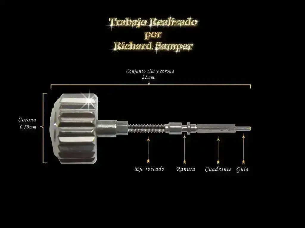 Ahora veremos algo que es muy importante y es la instalación del conjunto tija y corona. Os invito a ver la imagen siguiente. La he hecho para mis nobles amigos de relojes-especiales.com