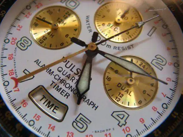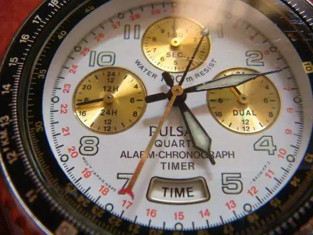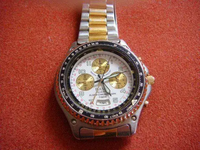 Saco para cambio este bonito Pulsar. No puedo calificarlo como vintage, pero tiene unos cuantos años, aunque ha estado guardado sin usarse durante mucho tiempo. Tiene la pila recien cambiada y funciona perfectamente hora, crono y fecha, lo que no estoy seguro de que funcione bien es la alarma o quizas yo no sepa ponerla