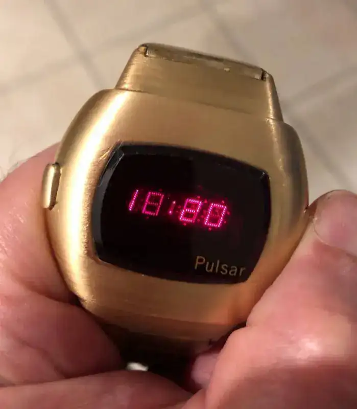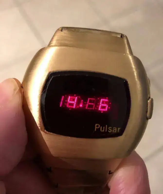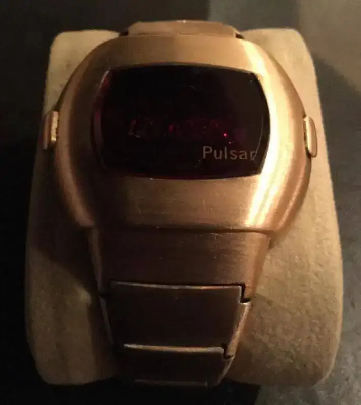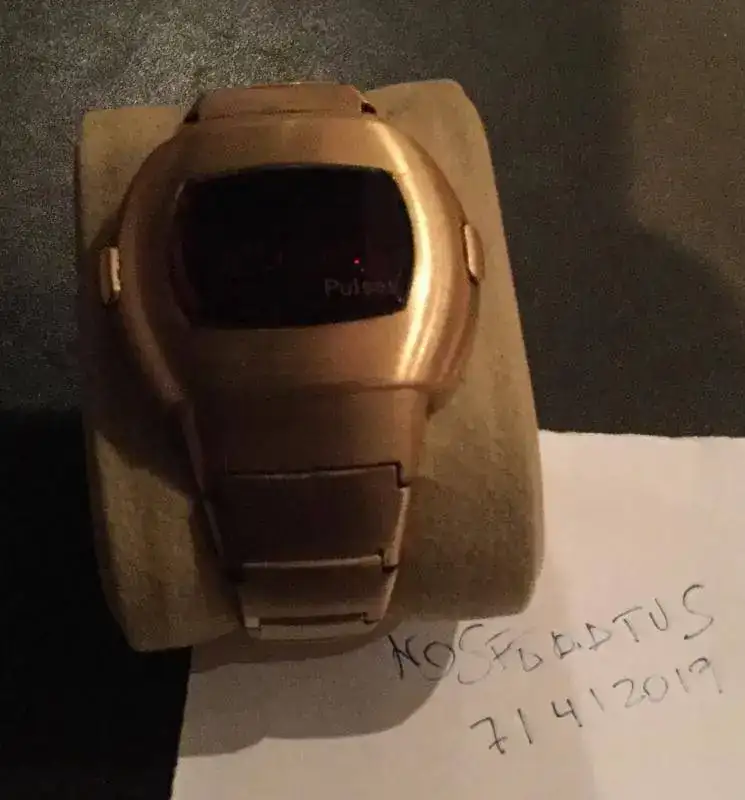 Vendo este mito de los relojes LED, fundamentalmente porque tengo otro y prefiero que alguien lo pueda disfrutar. Se trata del Pulsar Date Command de oro chapado de 14k, más conocido como P3 (hora, segundos y fecha), con módulo original 3100. Fabricado por Pulsar Time Computer INC a principios de los 70 (mucho antes de que Pulsar fuese comprada por Seiko ).