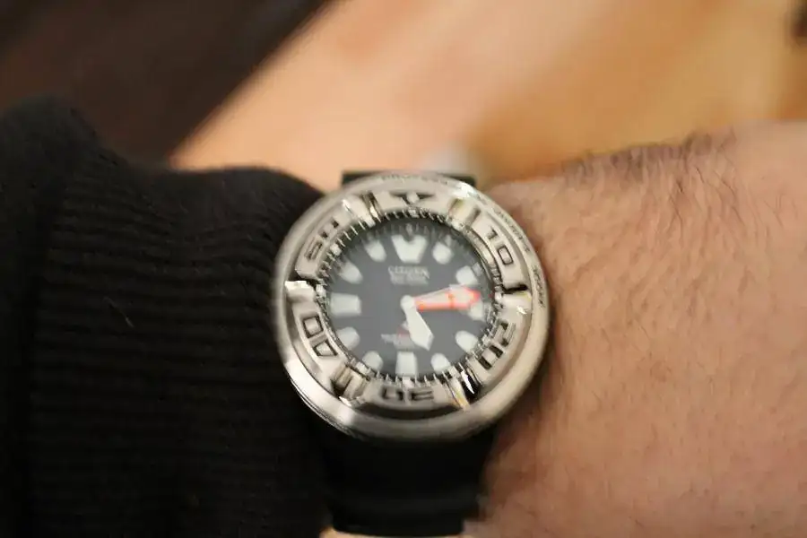Busca un Seiko Dojo en el mercado de ocasión. Está descatalogado, pero de vez en cuando sale alguno. Son 44 mm., para mí el tamaño justo para un diver, y con su armis macizo pesa unos 210 gramos. Tiene una esfera grande, porque su bisel es estrecho, y es un relojazo, por unos 200 euros o poco más. Y encima va de maravilla.