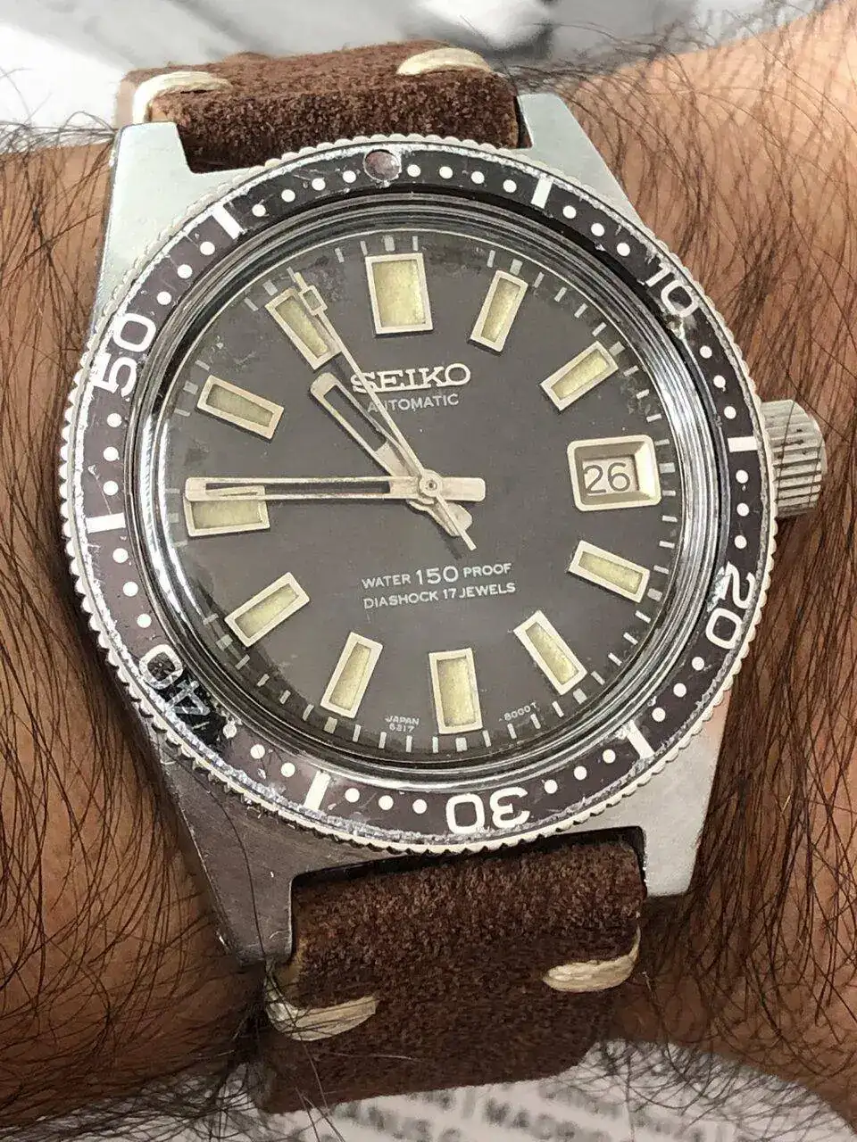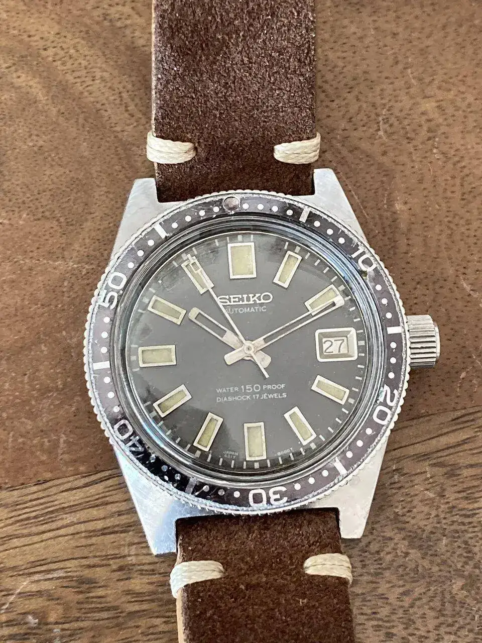 Ese Daini de la derecha son palabras mayores…Enhorabuena. Es espectacular. No sé si sólo se hicieron 300, pero se cree que sólo se fabricó entre los meses de abril y junio del 67, lo que lo convierte en uno de los seiko diver vintage más raros y difíciles de encontrar.Son preciosos. Los divers son geniales pero los skindivers, cuando los descubri, aun mas imo. Son menos mazacotes y mas utilizables para mi. Si quieres rizar el rizo hay los 62MAS Daini, con lumen y dial marron, te aseguro que mucho mas bonito que el suwa verdoso creo, de los que solo hay unas 300 unidades que se sepa:
