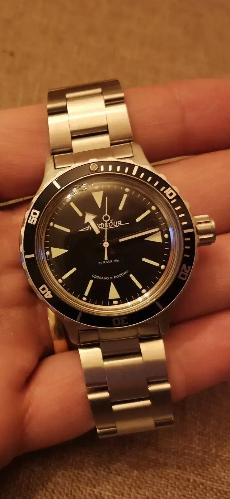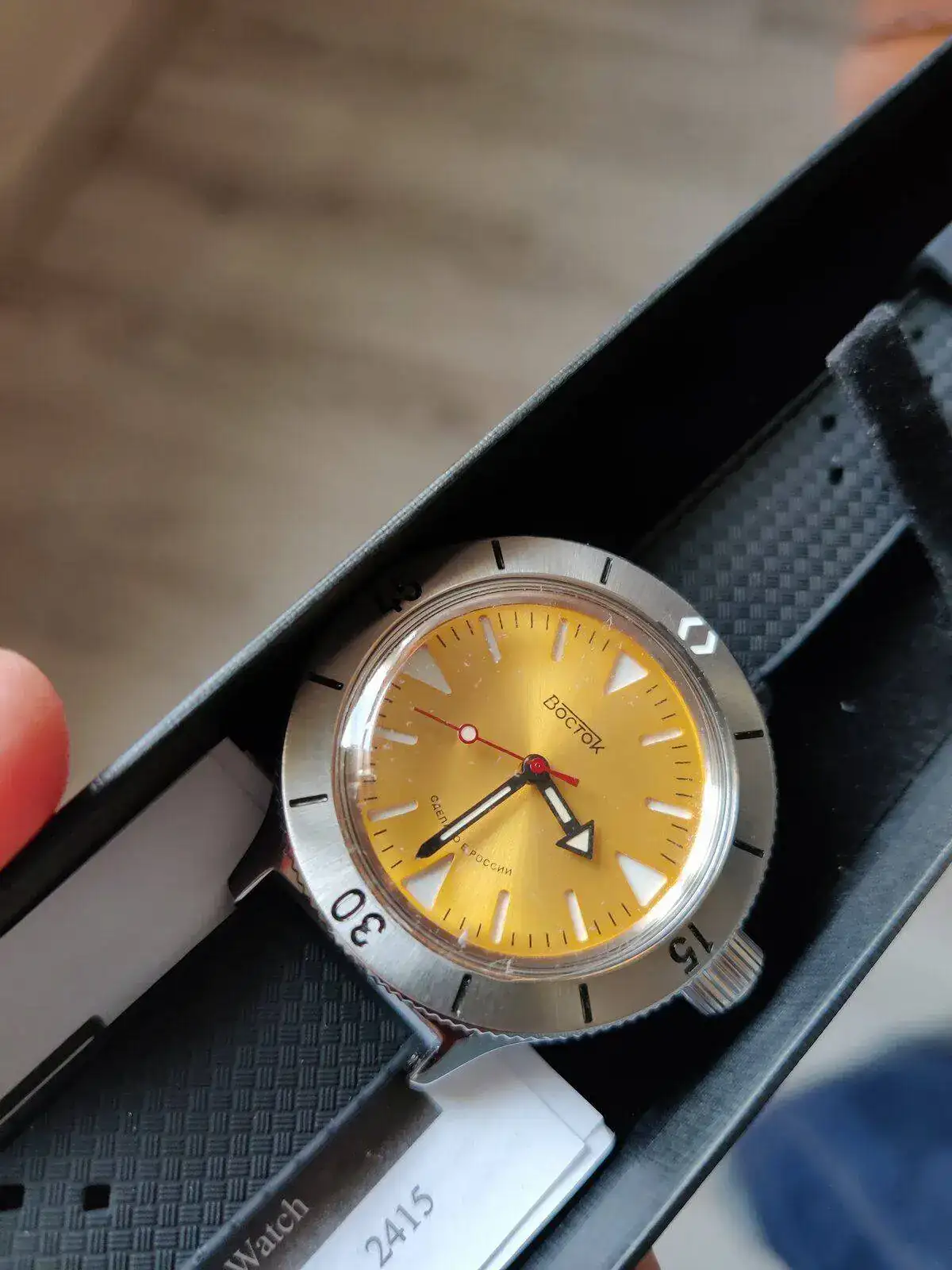 Precioso "wacho" (asi les dice un amigo a los relojes, me supongo que una deformacion del termino ingles "watch"), esa caja me hace falta en mi caja, valga la redundancia.Llegado desde Chistopol con amor