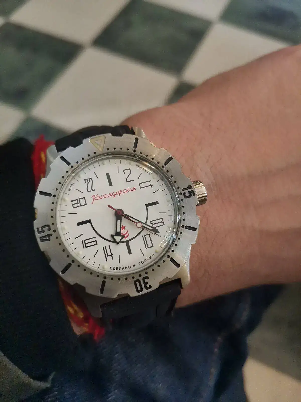Está bastante complicado... Yo tengo ese reloj la versión en azul. Los índices son en relieve y con lumen.Pues un vostok k35 (24h) que se viene a la isla.