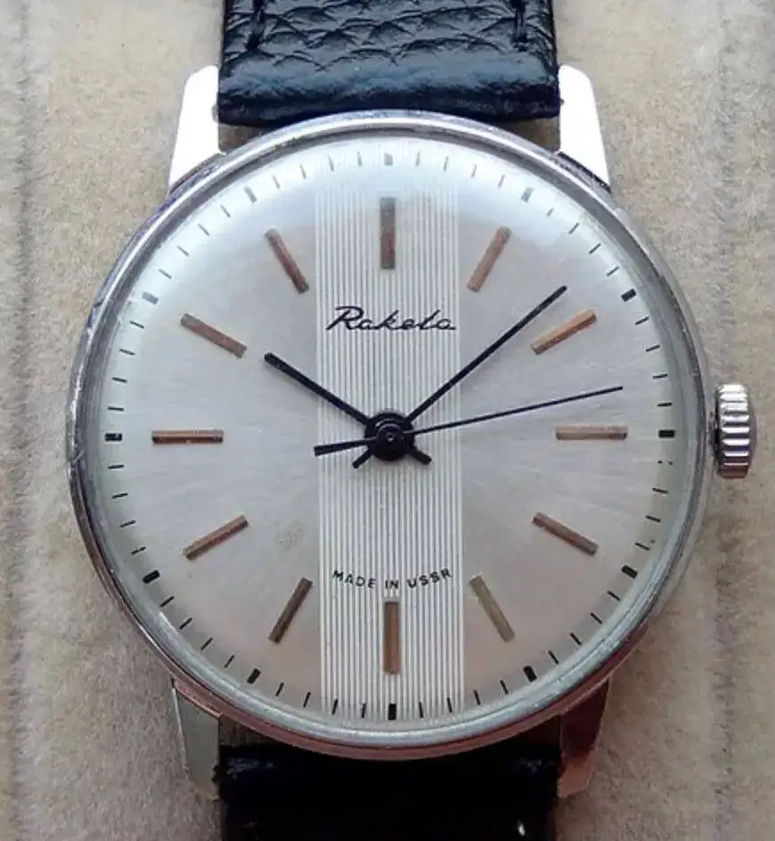 Pues yo diría que sí son las suyas originales. Te adjunto una foto del ejemplar en la colección de Dashiell y una captura del catálogo que publicó Raketa en 1989.Gracias Xabier. No estaba muy seguro de si cogerlo, porque creo que las manecillas no son las suyas, pero al menos sí son todas de un mismo conjunto o lo parecen