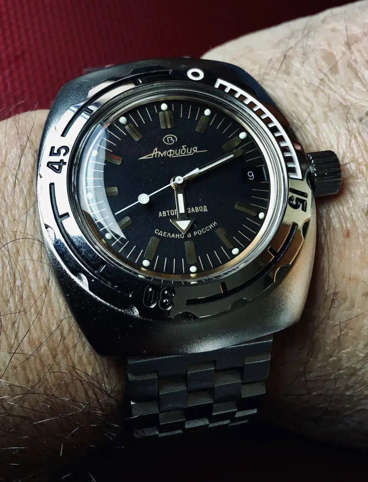 Me encanta ese modelo!!. Yo lo dejaría tal cuál y con un armis. El bisel, con esos toques en blanco le queda de maravilla haciendo juego con la segundera. Muy guapoHola. Ayer lo presenté en el ruso de cada día, y hoy lo vuelvo a mostrar. Me gusta porque le veo un espíritu muy soviético. Es mi primer Vostok, y me ha sorprendido; especialmente el brazalete, que es muchísimo mejor de lo que esperaba. Aún no lo he acortado, y por eso he estado haciendo pruebas...Ver el archivos adjunto 1190116