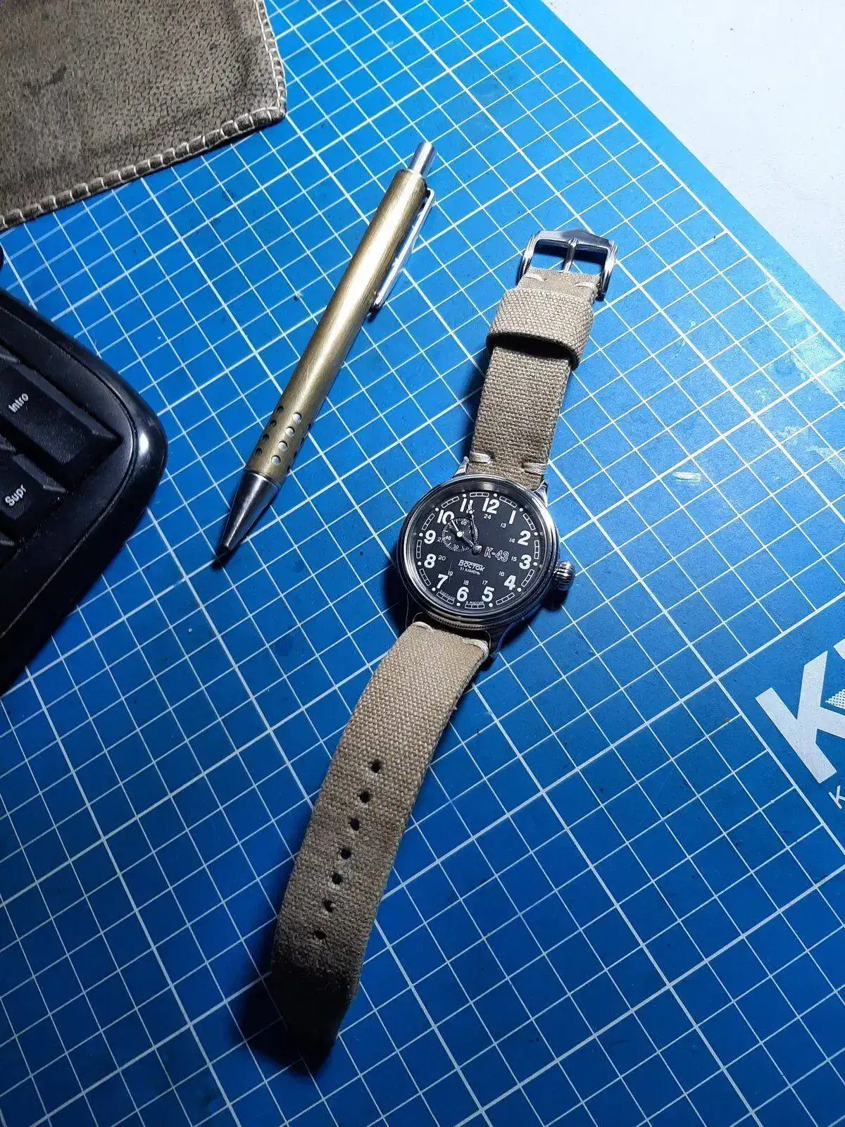 Tampoco hubo flechazo, pero recordé que en mi cajon de correas, tenia una correa beige que me llegó como obsequio cuando le compre un reloj a un colega.