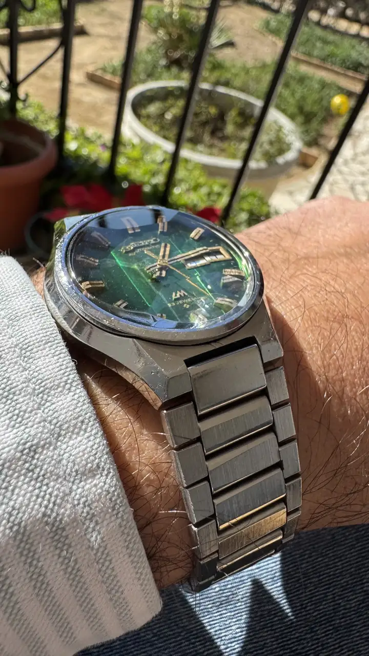 Esto es como cuando uno se prueba una prenda que no suele comprar, al principio te ves raro .Pues ya que pides sinceridad, te diré que no entiendo cómo puedes dudarlo. Un LM setentero a rabiar con un color precioso, cristal facetado y calendario kanji ¡Es una guapada con solera y personalidad! 💚