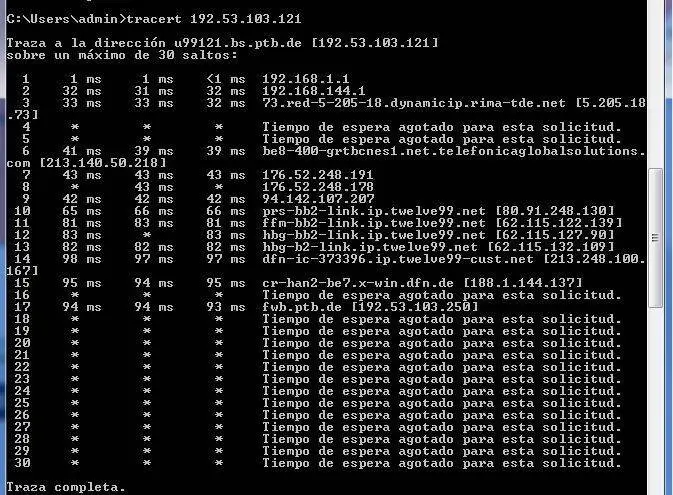 Utilizando traceroute nos da más información: en bucle se alcanza el último servidor alemán IPv4 en 93 ms.