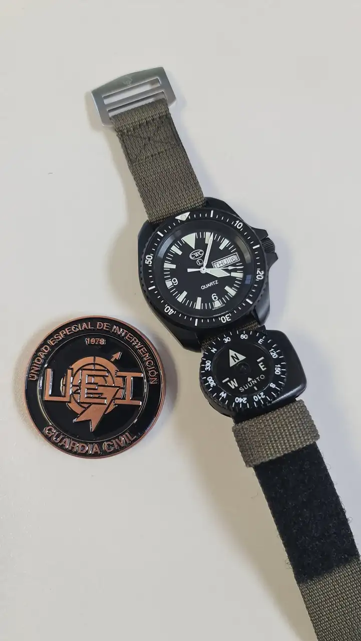 Me alegra ver que hay otros compis con los que comparto una pieza tan particular. Relojazo! 🙌Es un CWC SBS con brujula Suunto y correa WoE