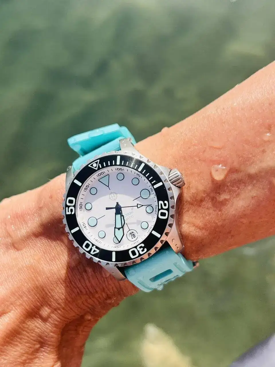 Tal cual compañero, silicona (como decimos a este lado del océano) y brazalete (extensible metálico). Son los adecuados para el mar. Ya los diseños depende de tu gusto. Pero esos son los materiales adecuados.Hola, soy novato en el mundo relojes, estoy empezando y me gusta empaparme de información. Estoy viendo en el hilo diferentes modelos, cada cual más bonito y acertado para días de playa, pero respecto al tema correas, ¿qué recomendáis? ¿Cuáles aguantan mejor o no sufren ante el agua, la arena y la sal del mar? Imagino que caucho y acero, pero por corroborar con gente que me saca algunos años de experiencia.