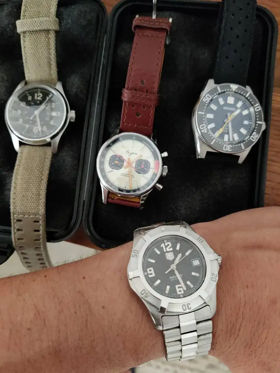 El Tag y el Seiko salen puestos en la muñeca a primera hora de la mañana, listos para un chapuzón en el mar y/o piscina.