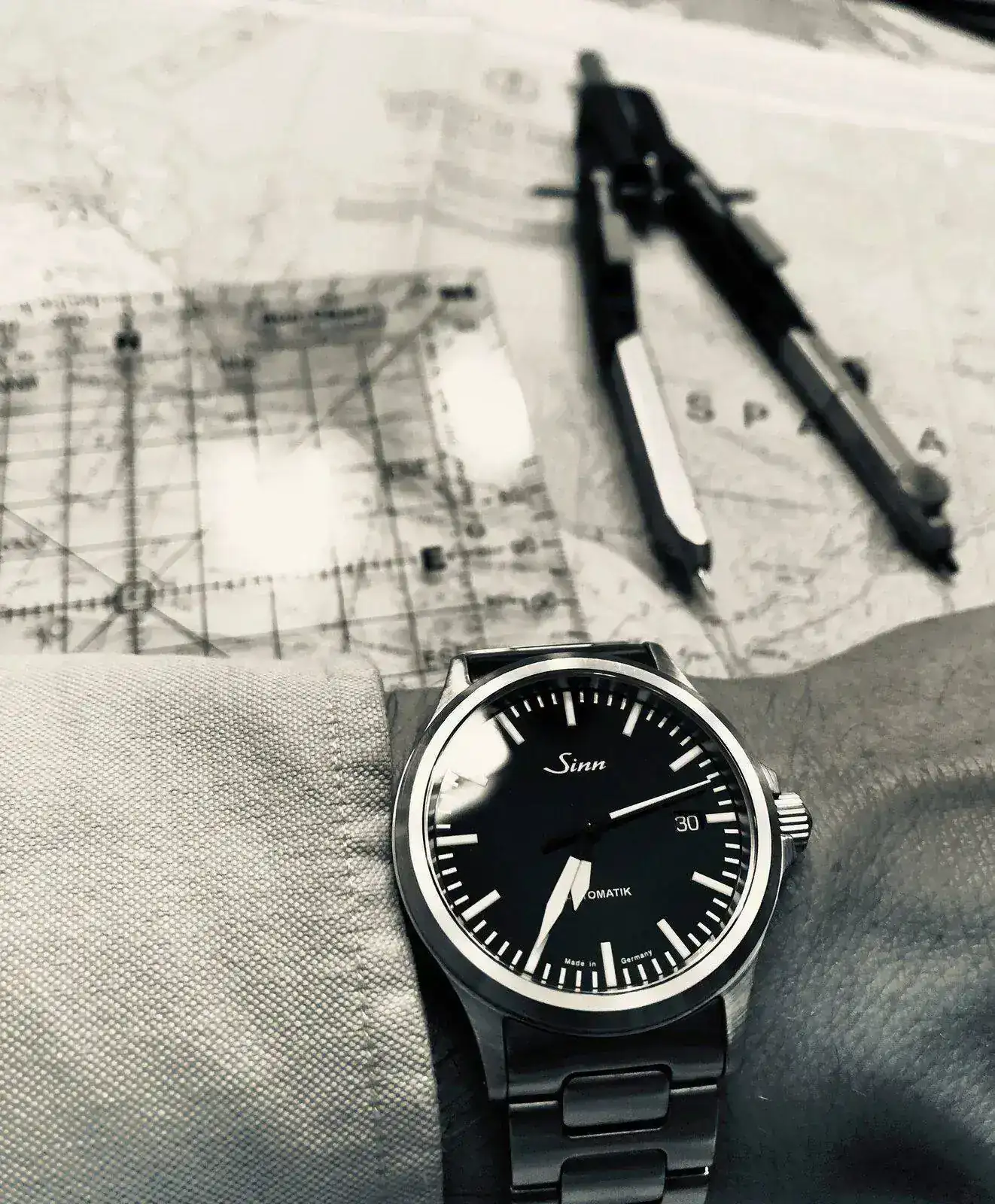 Sinn 556 i (El mismo en versión sobria) Es dial es mate, sin brillos, sin estridencias. No puede ser más alemán. Me sobra un poco el fechador... Me pone menos nervioso que el azul pero es mas neutro. Tengo miedo que se me pise con el TAG. Son diferentes pero la esencia es parecida.