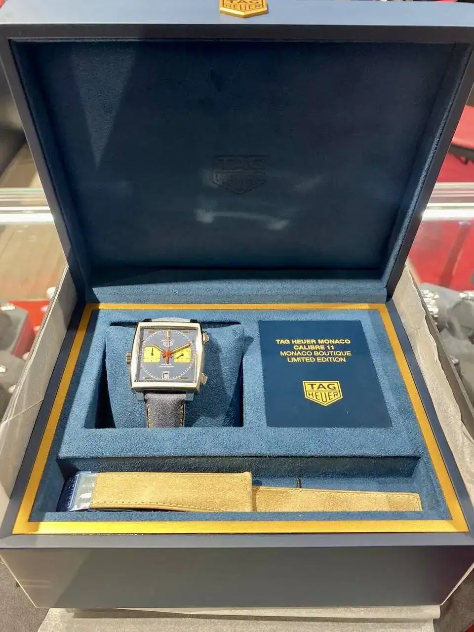 TAG Monaco Titanio, con agujas, sub esferas e indices dorados, edición Limitada 50 ejemplares para la Boutique de Montercarlo.