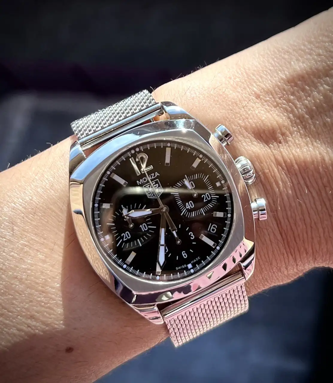 Me alegro que te guste compañero, en mi caso tiene la ventaja del tamaño 38mm para mi muñequita ideal, el Monaco me viene algo grande menos mal 😅 porque es demasiado atractivo, sobre todo las versiones Gulf y si te gustan los coches de carrerasGracias compi. Ese Monza es una pasada, es el tercer TH que me gustaría tener (junto a mis Monaco y Carrera)