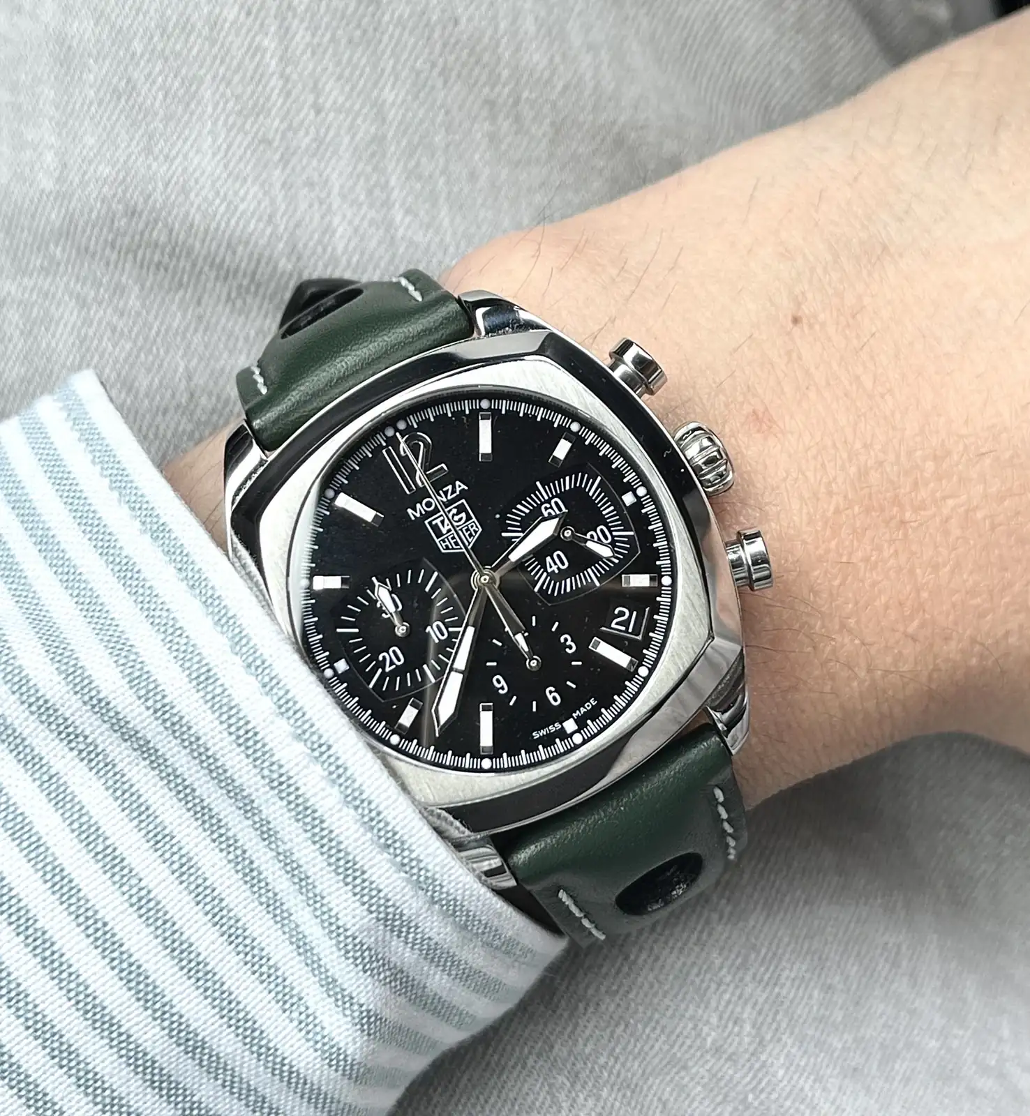 Si claro, es de Jacobstraps , una maravilla, gordita y blandita, puedes elegir la longitud, anchura, hasta el color del perspunte, las tienes en muchos colores, ese verde no es tan fácil de combinar pero creo que le queda bien, saludosHola compañero. Me puedes indicar de donde es esa correa. Me encanta.