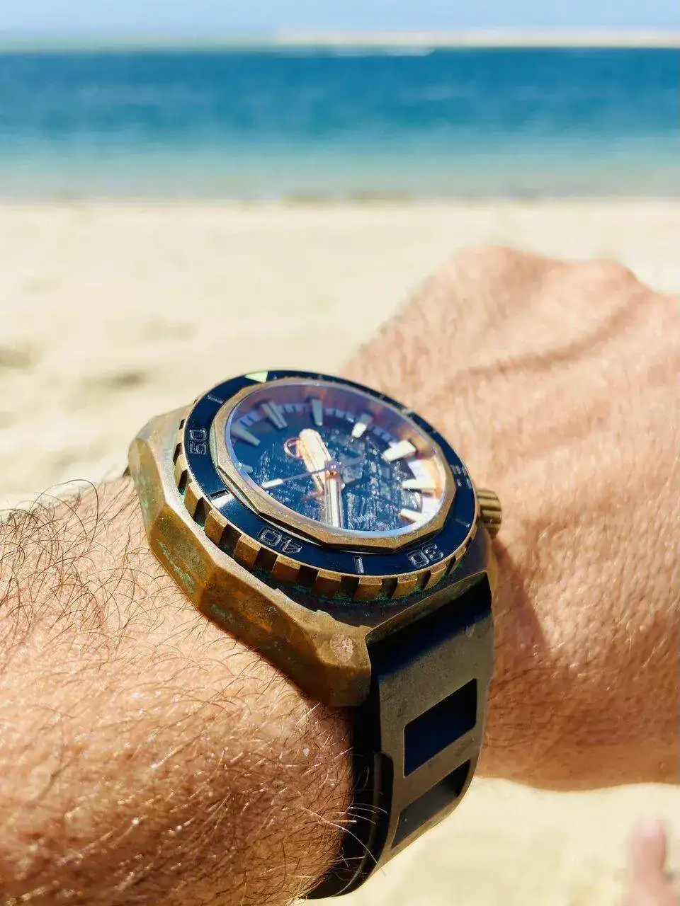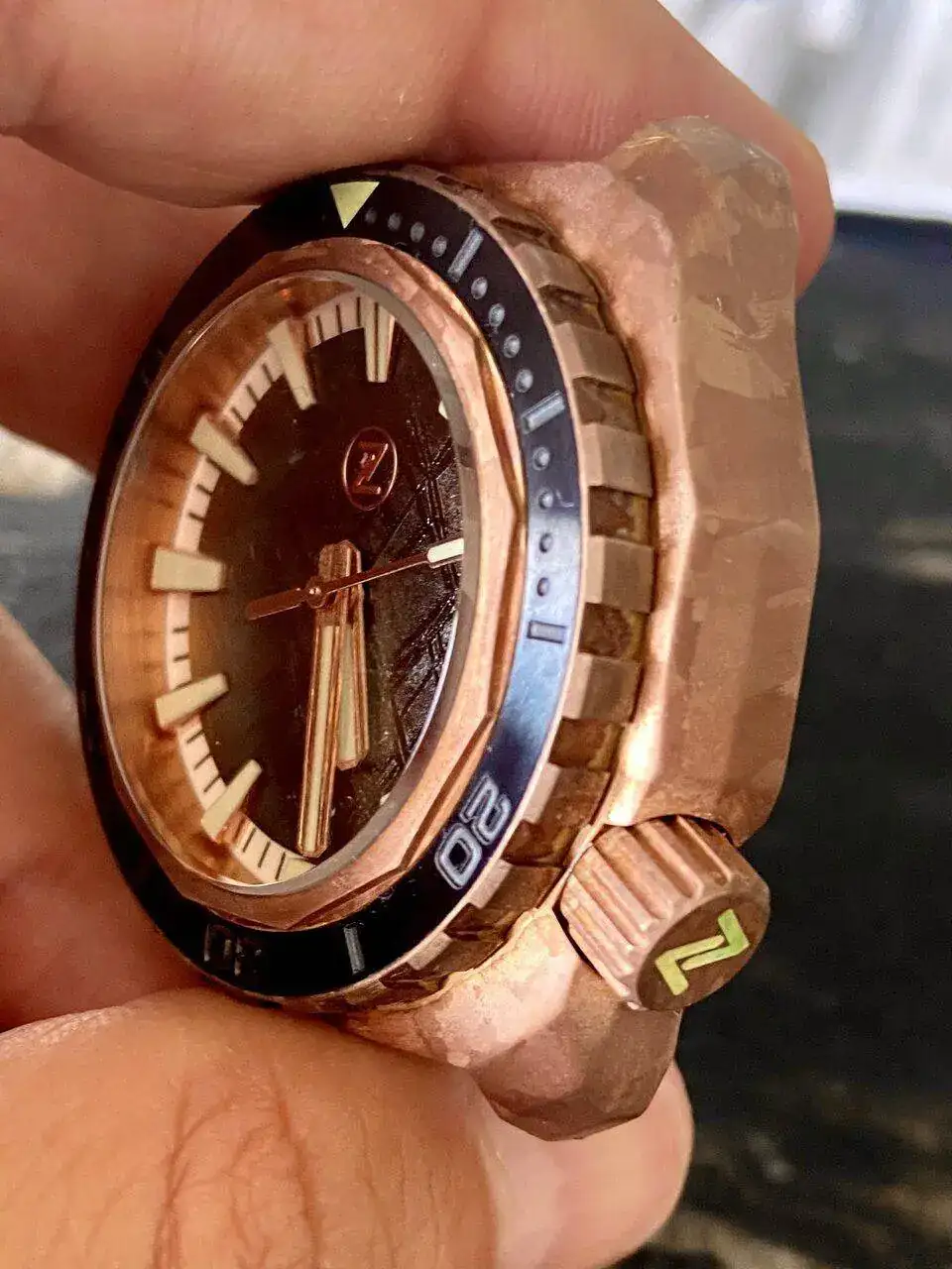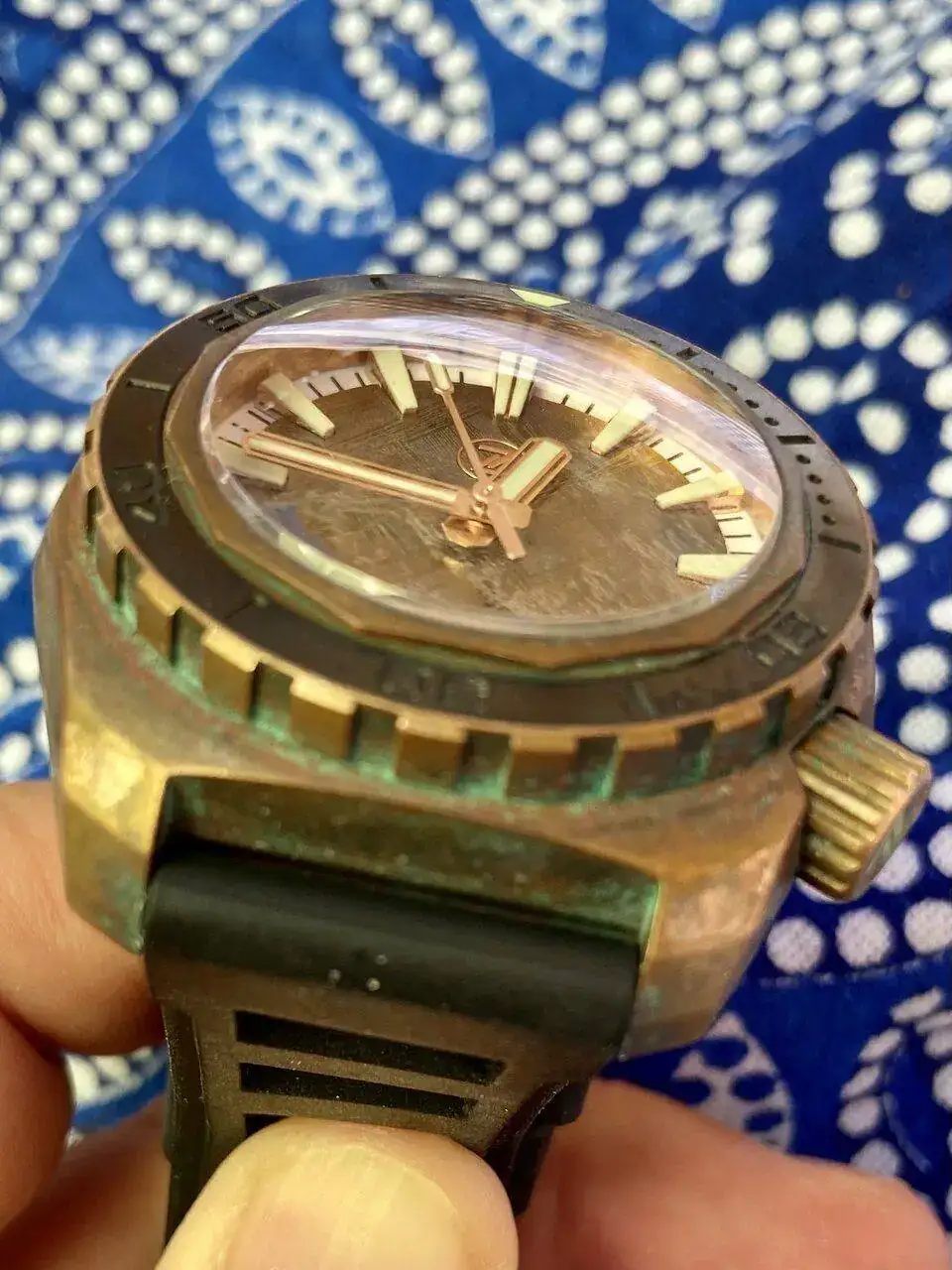 Es la misma idea que he tenido para este verano, en este caso con un Helson Shark latón. Es suficiente sumergirlo en la mezcla y nada más?Tengo un Zelos de Bronce con el único objeto de disfrutarlo en verano, meterle caña en el mar, jugar con la estética de tesoro encontrado en las profundidades ⚓️🛟🤣, finaliza el verano, le pego un limpieza, hasta el siguiente verano 🏖 y como nuevo.