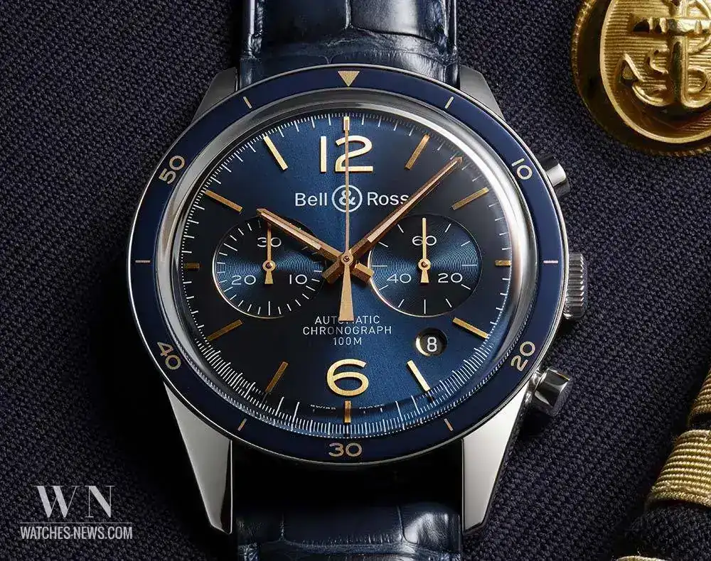 El crono creo q son 43mm. El solo hora 41mm.Este Aeronavale de B&R me encanta. La combinacion de azul intenso y el dorado es espectacular.