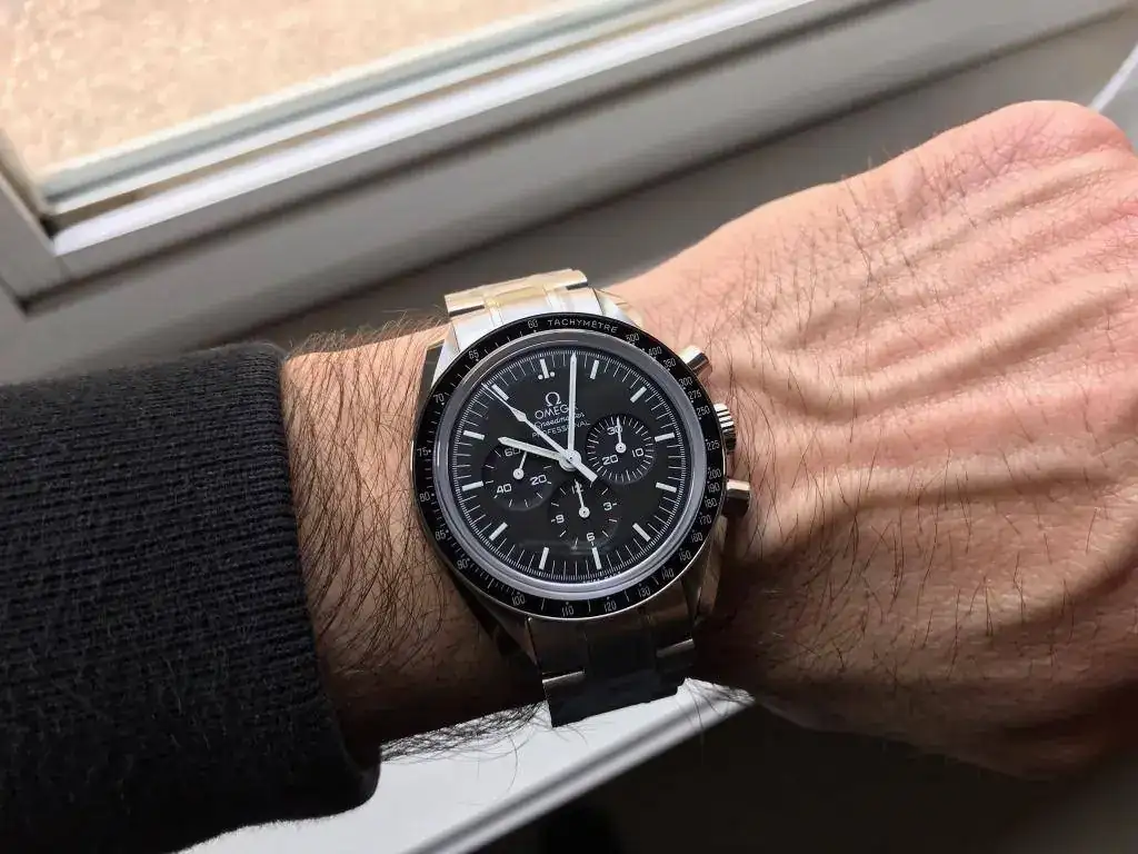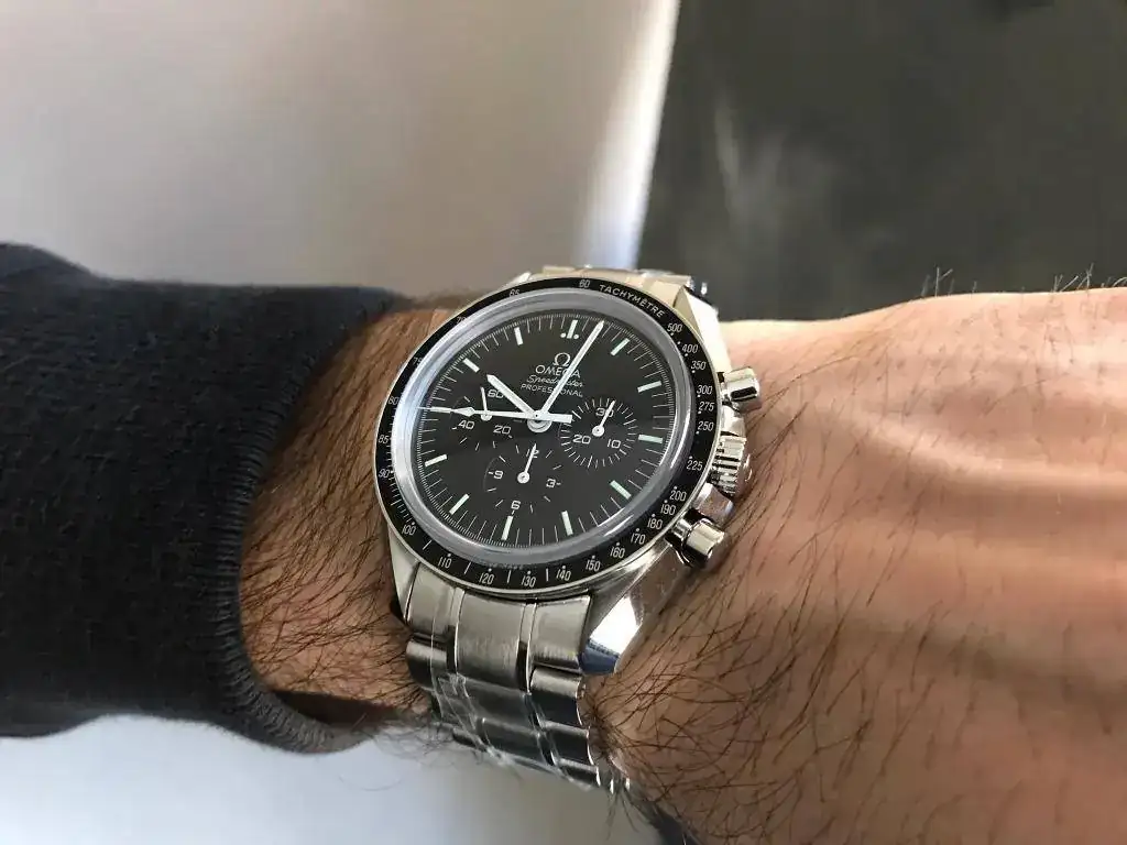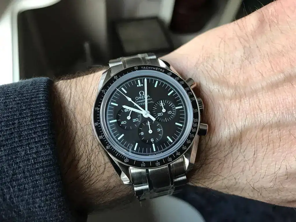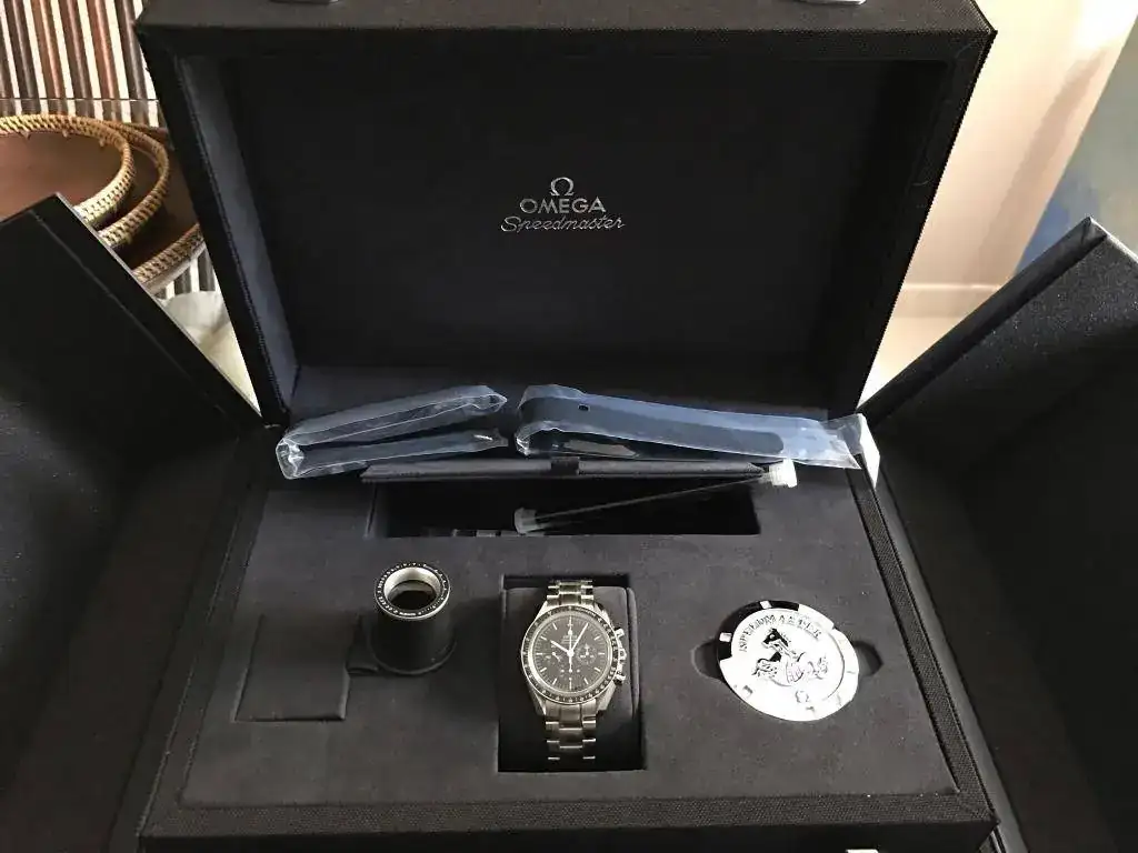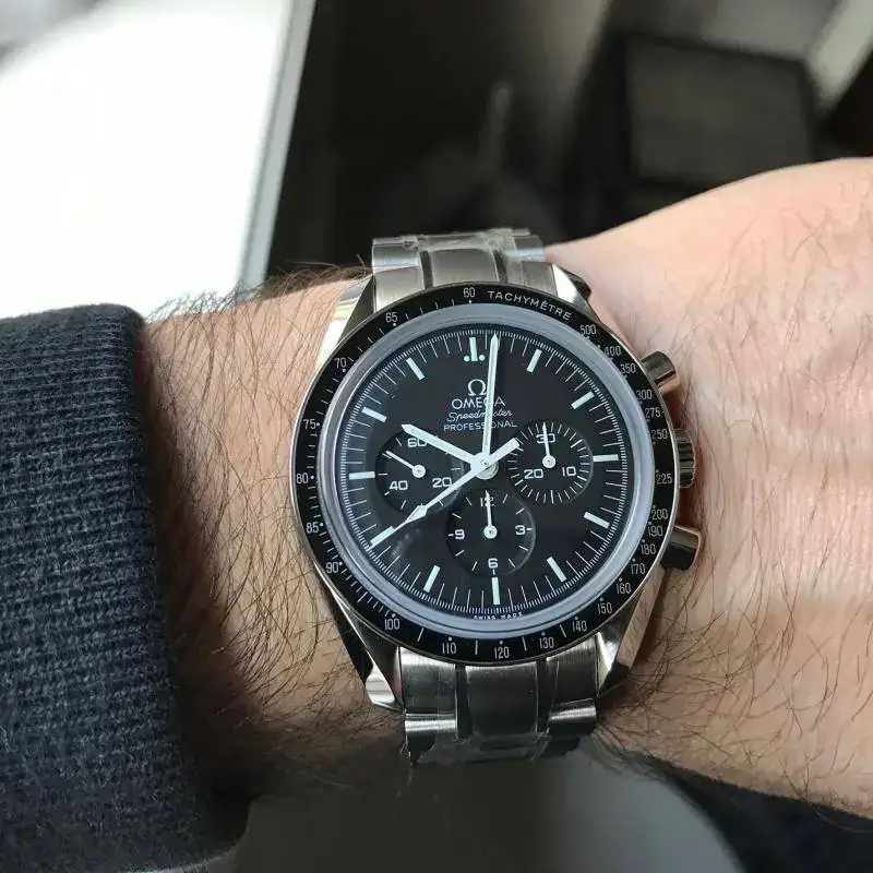 y mas cuando es uno de los que siempre he querido tener en mi muñeca. Ya hace 3 años barajé la opción del speedmaster o el seamaster cerámico y ganó el seamaster. Pues ahora le toca al speedmaster doble zafiro, que es el que siempre me quedo mirando en todos esos escaparates donde hay Omega pensando cuando será ese día que estemos juntos...Llegó el día y sin mas os dejo unas fotos mas que repetidas en este foro, ya que es un clásico, no el tan amado plexi
