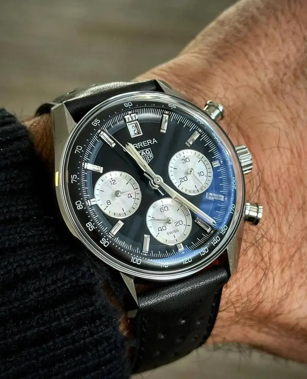 Como reloj en general me gusta más en color negro pero ciertamente el que puso la fecha a las doce le ha quedado la cabeza aliviada. El resultado de un crono tricompax con esfera panda siempre me ha encantado pero la disposición de la fecha haría que no me comprase el reloj. Aún así me gusta más que el otro cuyo color creo que me cansaría enseguida.