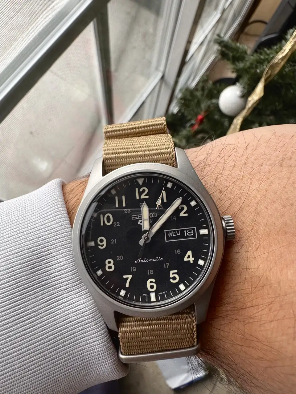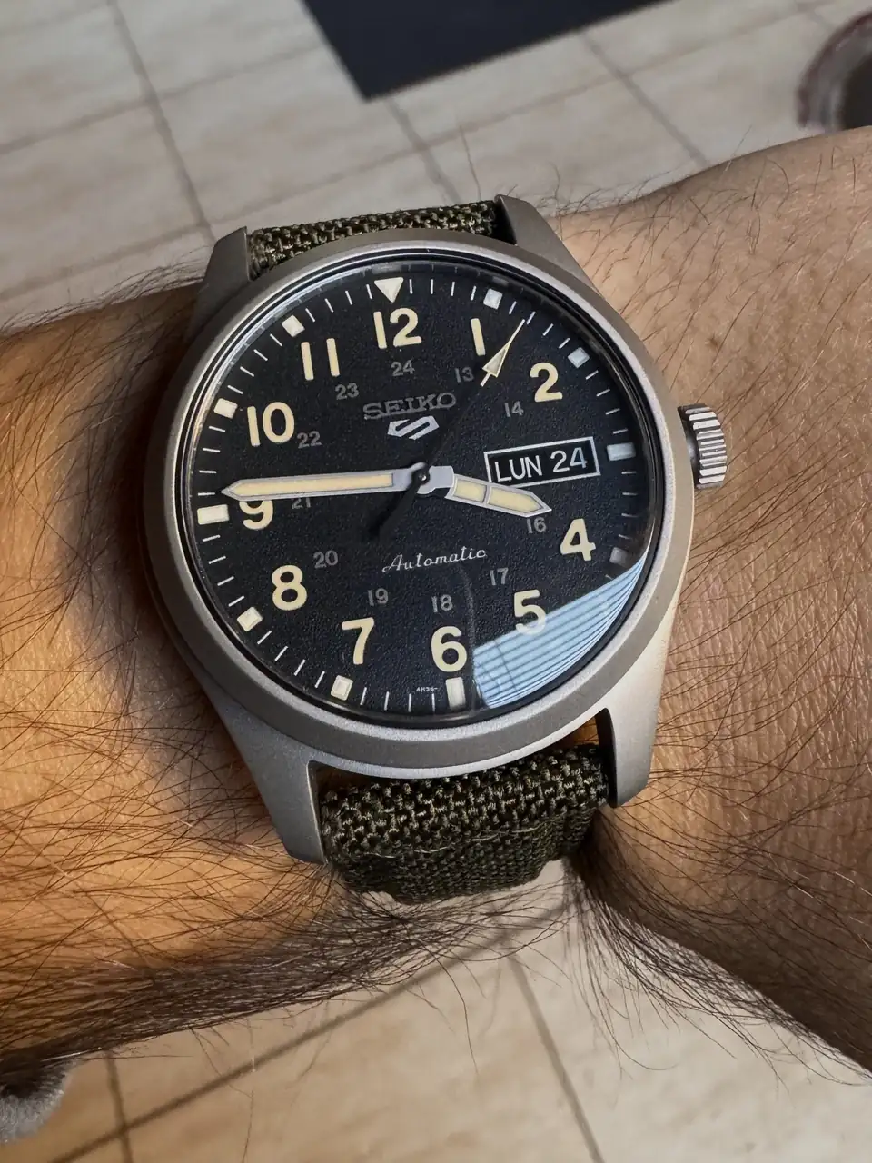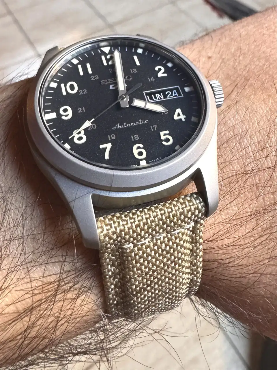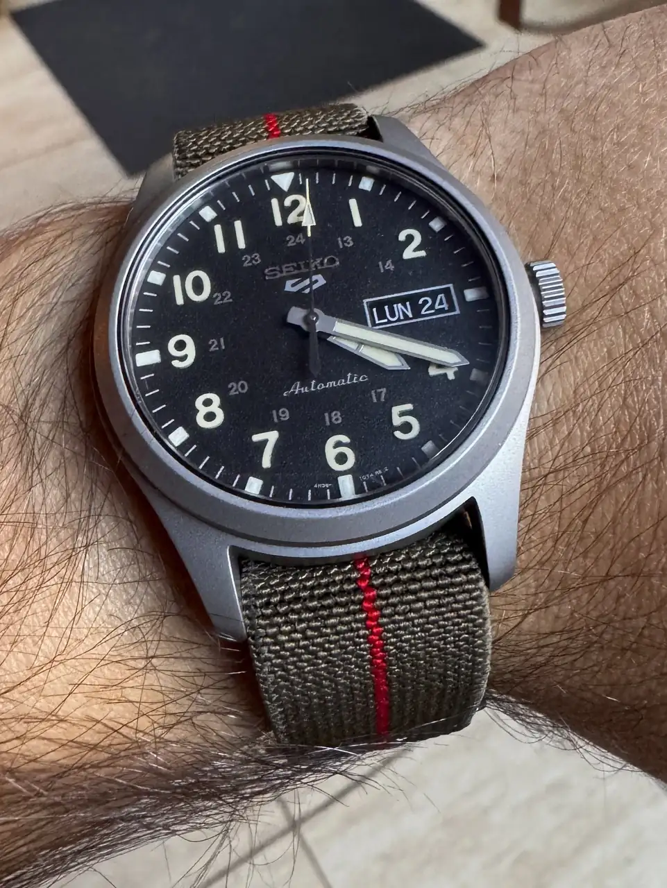 Me gusta la verde con línea roja. Pero a ese seiko le queda bien cualquier nylon verde o tierraBuenas a todos! Me gustaria saber que correa os parece que le queda mejor a mi nuevo seiko 5 field (Tambien son bienvenidas sugerencias):