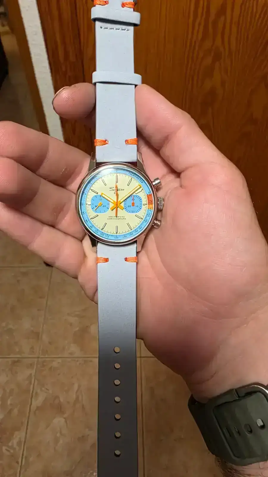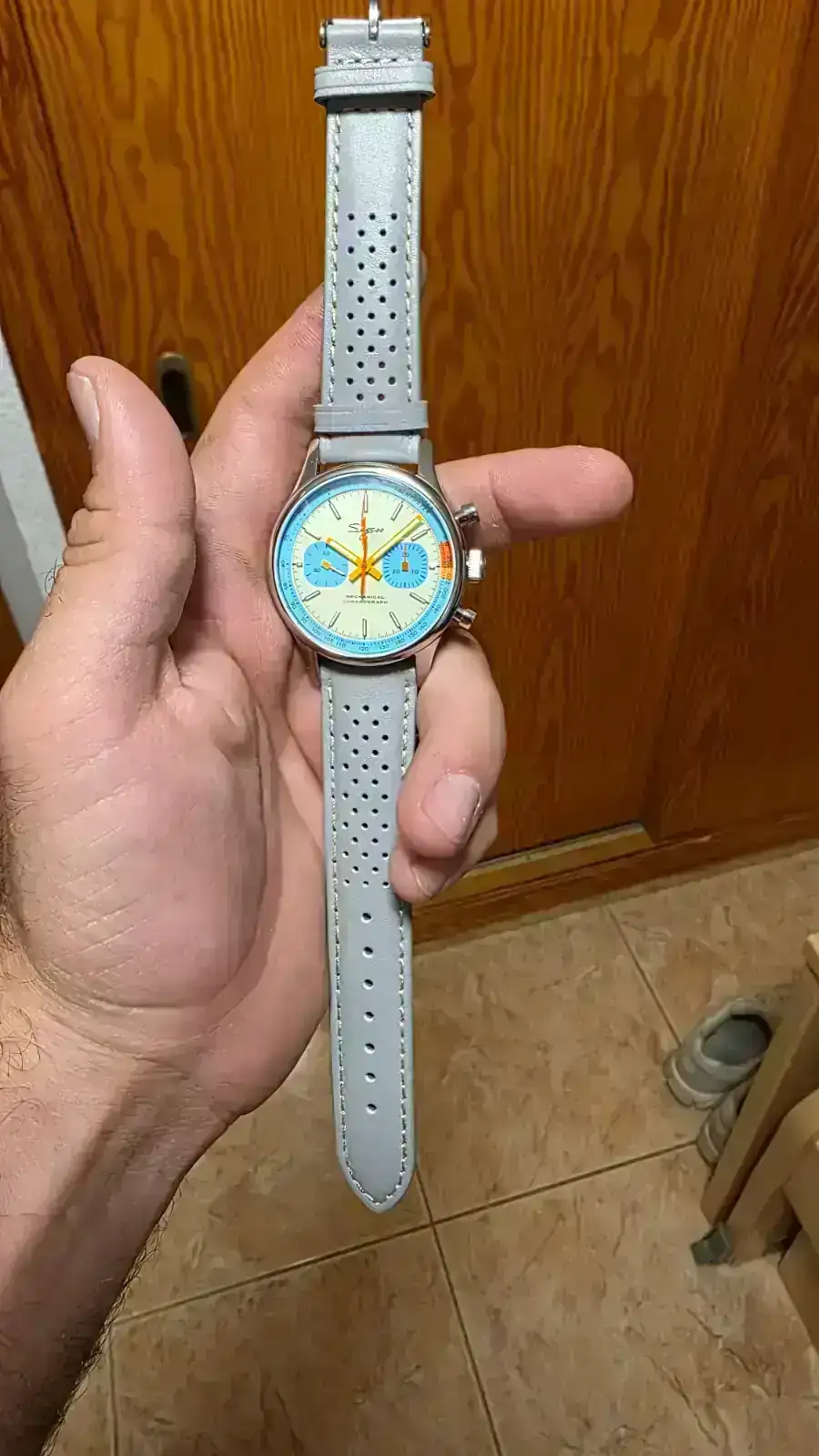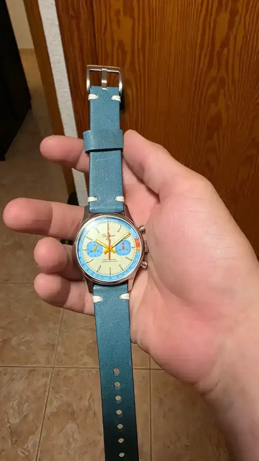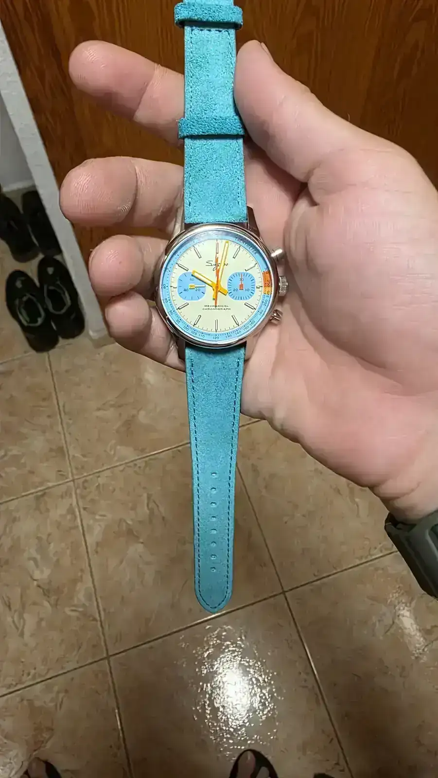 Ese celeste puede que se acerque mucho al azul del dial, me la guardo.