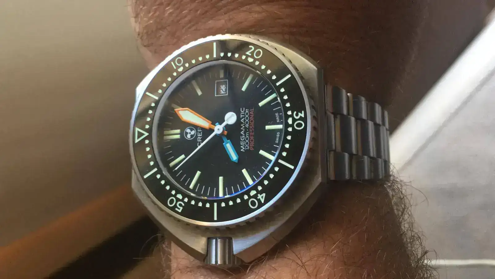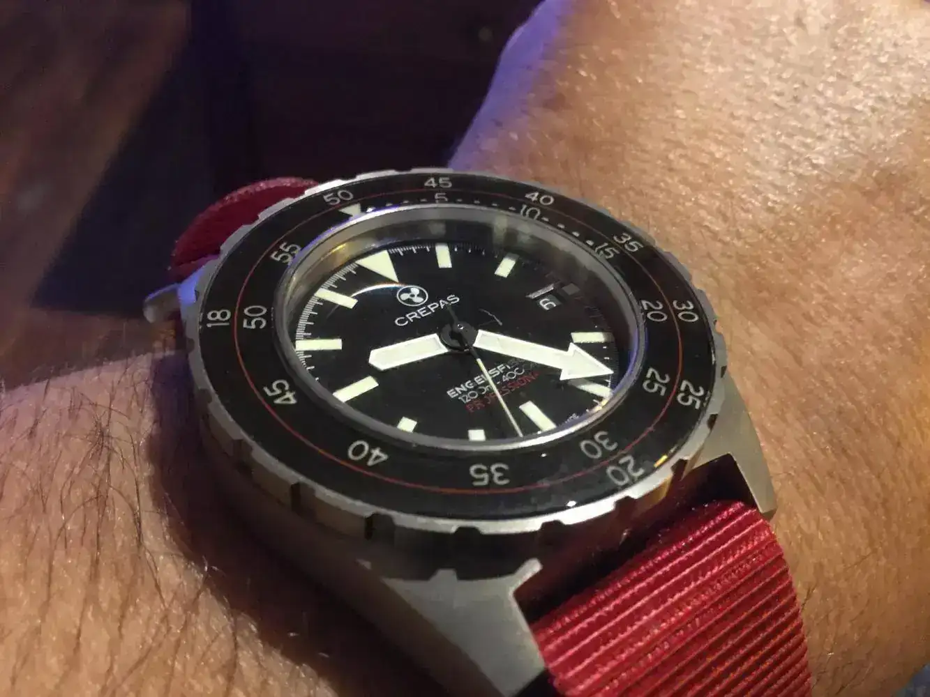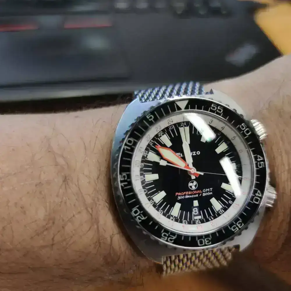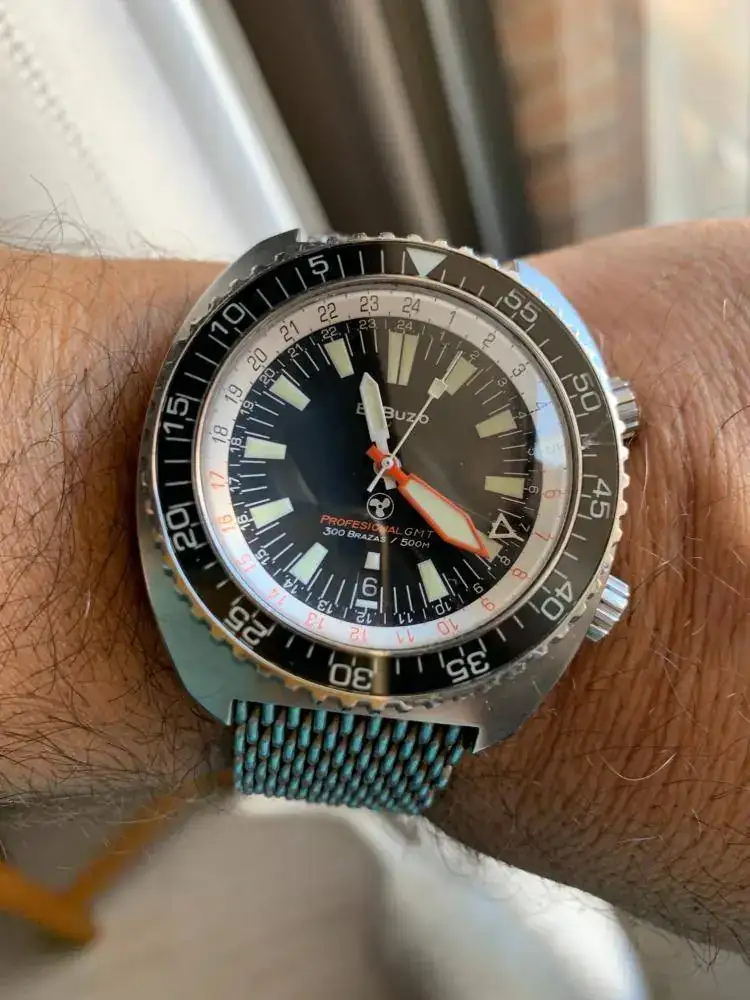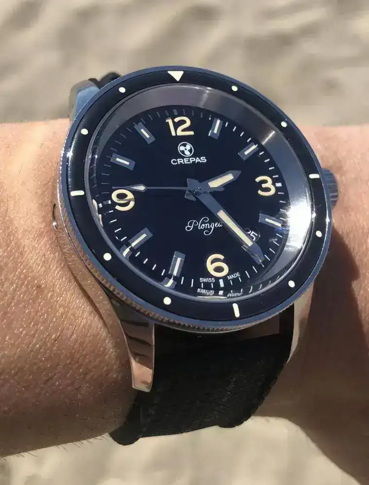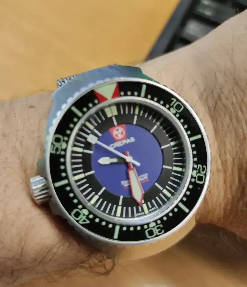 Mi duda es dial azul o negro; corona a las 9 y aguja de "pato" es inamovible.