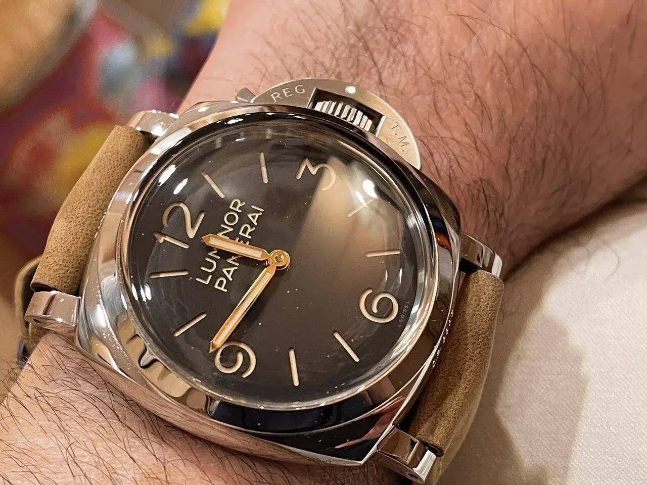 Pues no engañan menos que otras marcas. Lo que pasa es que las cosas que se ponen muy bruscamente de moda, con la misma celeridad suelen decaer. Pero desde luego es una pieza contundente y llamativa, que todo aficionado a los relojes de buceo debería tener alguna vez. Y si no puede hacerse con un original, como mi Luminor 8 días, por lo menos que accedan a algún homenaje de calidad. Yo pude adquirir también este otro modelo homenaje con dial de resina sándwich hecho por un artesano inglés que es una auténtica pasada en directo. Por cierto, similar al modelo de-editado ahora por Panerai.