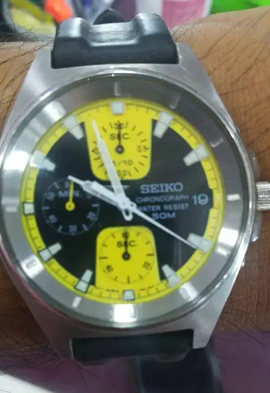 Hola amigos foreros! el día de ayer caminando por la ciudad me he topado con 3 relojes Seiko en una tienda de ocasión: 1 World Timer Chronograph y 2 Chronos, uno amarillo con negro y uno azul muy bien conservados, ni un rasguño y muy bonitos, por 50 pavos cada uno.