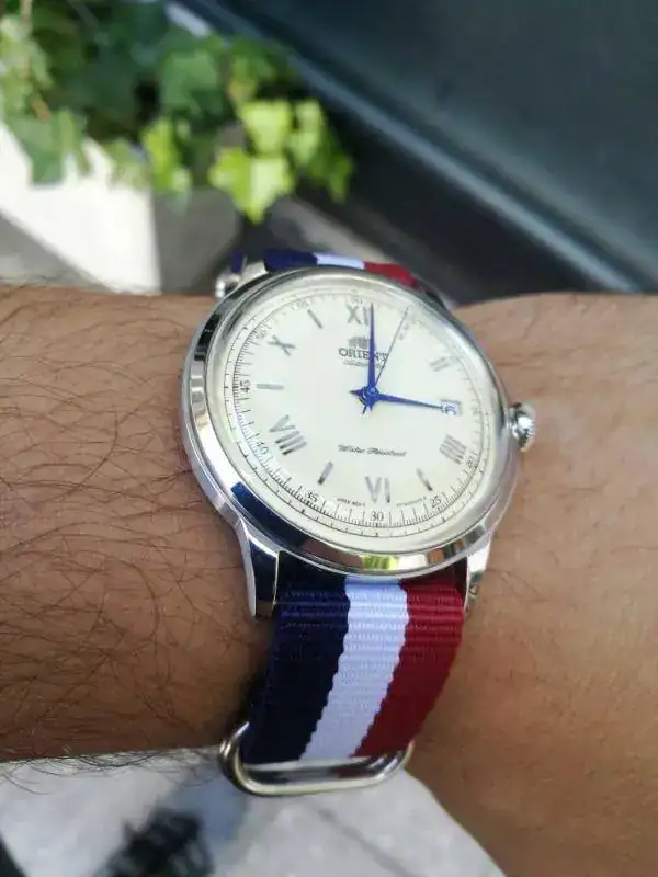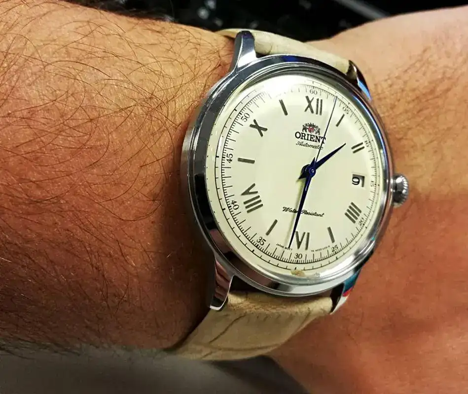 Gracias amigo, está que muestro es "su" correa, la que le puse ni bien lo recibí, ya que la de fábrica es marrón oscura y muy plasticosa. Le va como un guante, pero no la veo con mí traje negro y zapatos + cinto negros.Una correa marron clarita o rollo color crema le quedaria " cosa fina "