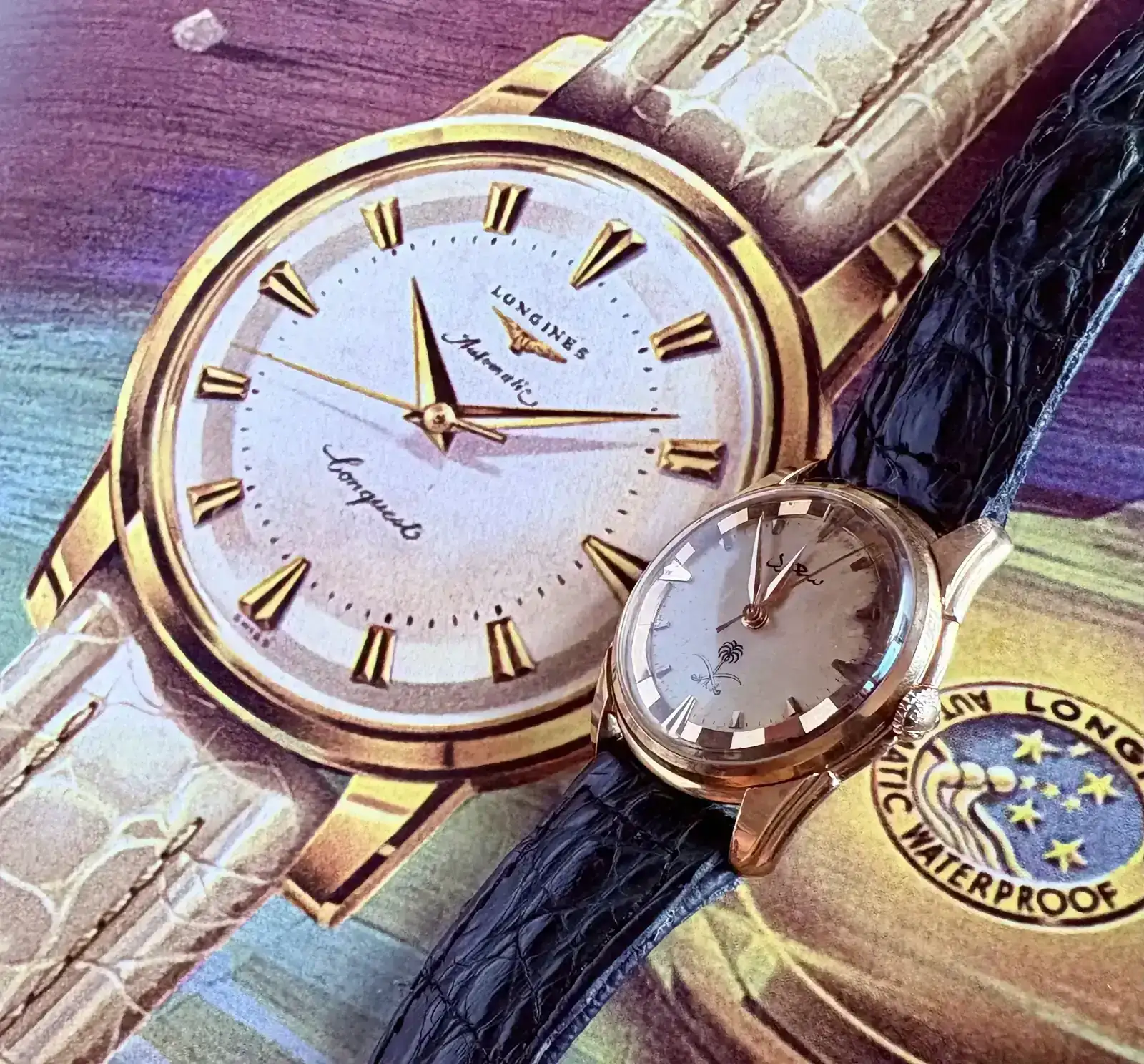 Hoy la década de los 50 y su robustez en mi especial “Jamalongines”. Bastante calco de los Conquest de la época, pero con fondo de oro sólido, sin medallón esmaltado. Como diría un amiguete italiano muy salado: “e ma non e” 😇