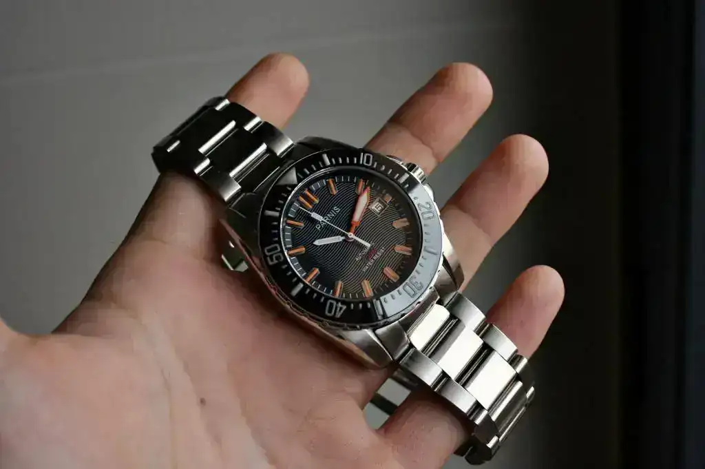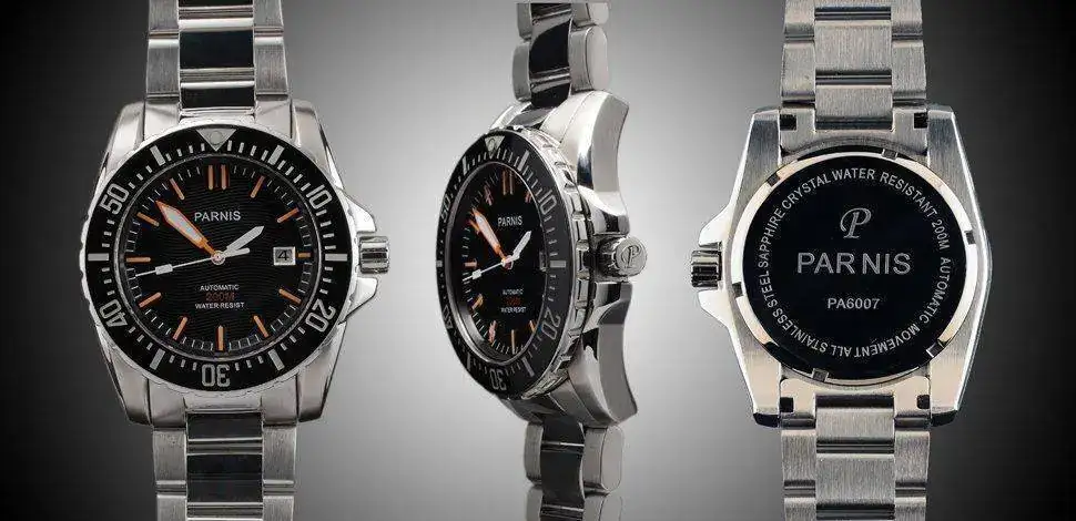[h=1]MODELO: 200 m. Zafiro Bisel Cerámico (brazalete de acero)[/h][h=1]REFERENCIA: 200[/h][h=1]MOVIMIENTO: Automático con remonte manual, modelo Seagull ST21/Hangzhou 6300(basado en el movt. suizo ETA-2824)[/h][h=1]FUNCIONES: Función horaria, calendario, bisel funcional para mediciones de tiempo parcial.[/h][h=1]DIMENSIONES: Anchura: 43 mm. / Altura: 13 mm. / Largo con asas: 52 mm.[/h][h=1]CAJA: Acero sólido 316L (antialérgico).[/h][h=1]CORONA: Roscada, de estría gruesa, doble junta de estanqueidad. 3 posiciones (descanso/carga manual, extracción 1, extracción 2).[/h][h=1]BISEL: Bisel cerámico de gran dureza y resistencia, unidireccional. Color negro-brillo, con indicadores en blanco[/h][h=1]TRASERA: Acero sólido, tapa roscada y grabada con la firma Parnis, 6 puntos de agarre.[/h][h=1]ESFERA: Texturizada (efecto oleaje), en color negro-brillo, indicadores naranjas (aplicados/cromados), agujas tipo “plongeur”[/h][h=1]CRISTAL: Cristal de zafiro, de gran resistencia y durabilidad.[/h][h=1]SUMERGIBILIDAD: Sumergible hasta 200 m. (20 atm.)[/h][h=1]