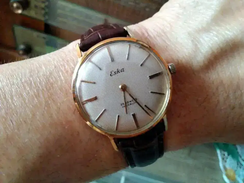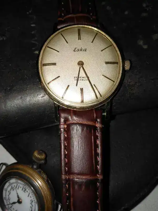 Este Eska es un reloj sencillo y fiable que marca tan sólo la hora y los minutos. Ni tan siquiera tiene segundero.