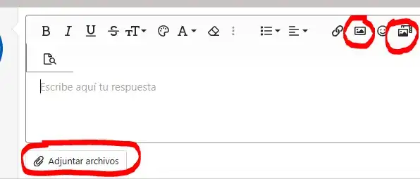 Si los que señalas con la redonda salen en blanco, no puedo pulsarlos. El de adjuntar archivos si
