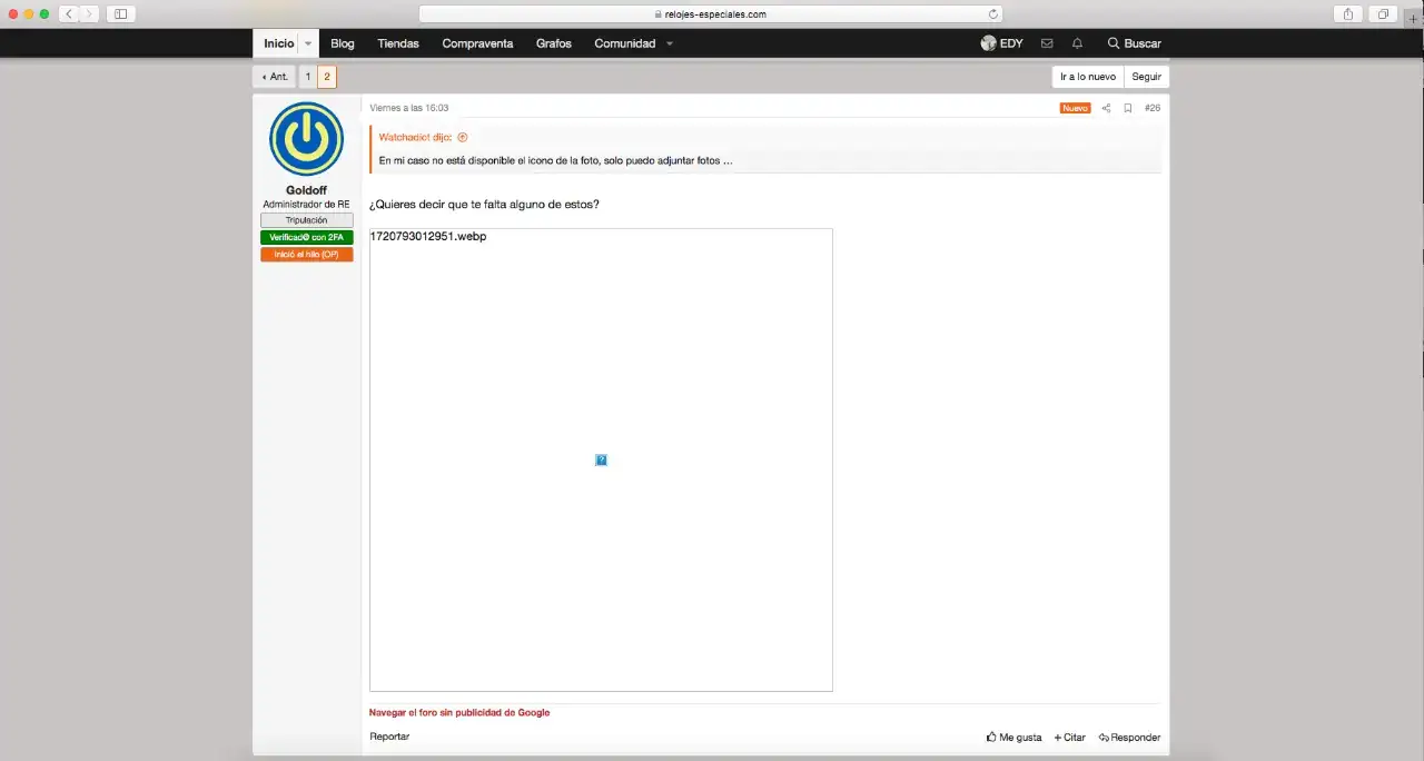 • El foro de relojes de habla hispana con más tráfico de la Red, donde un reloj es algo más que un objeto que da la hora. Relojes Especiales es el punto de referencia para hablar de relojes de todas las marcas, desde Rolex hasta Seiko, alta relojería, relojes de pulsera y de bolsillo, relojería gruesa y vintages, pero también de estilográficas. Además, disponemos de un foro de compraventa donde podrás encontrar el reloj que buscas al mejor precio. Para poder participar tendrás que registrarte.