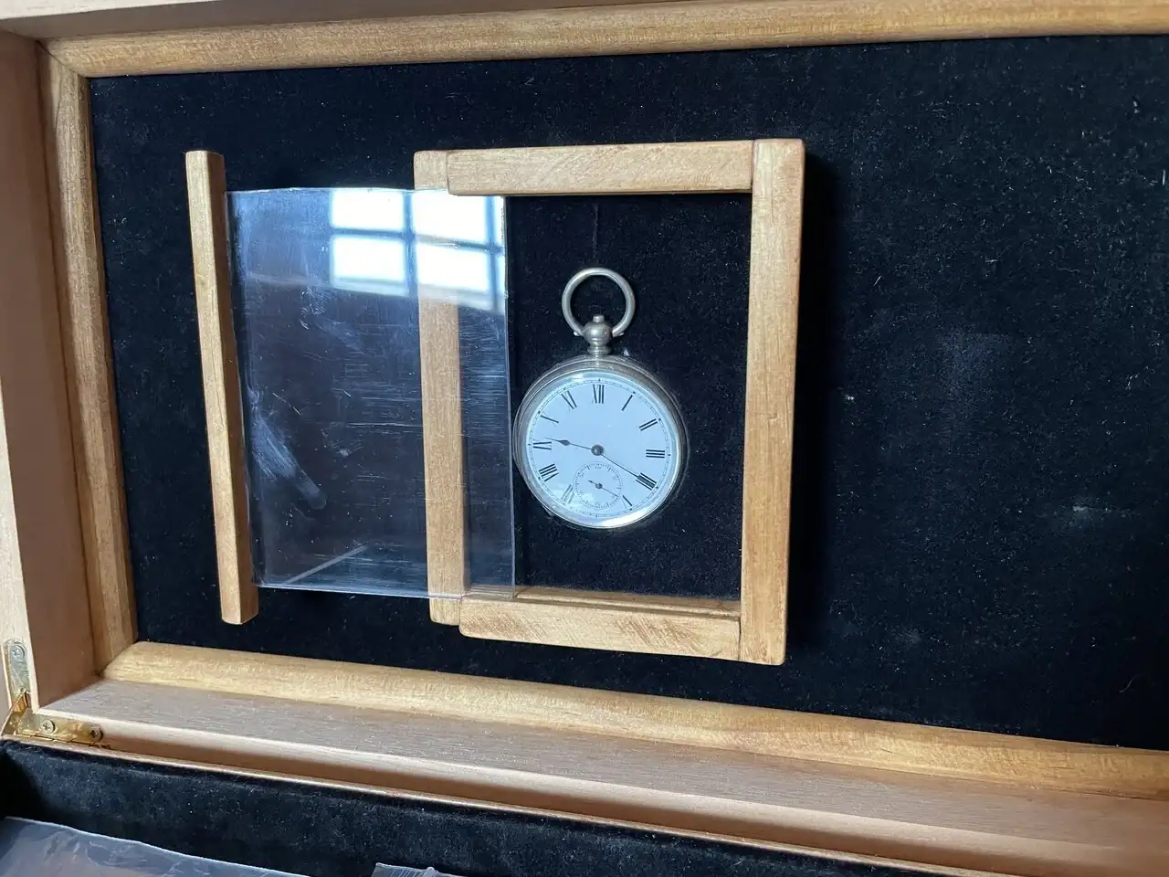 He vuelto ha hacer el foro donde descansa el reloj de bolsillo quedando un resultado mucho más limpio y además he añadido un terminación de madera en el metacrilato, de esta forma el marco queda mejor cuando esté está cerrado y además sirve de tirador. Además donde el hueco donde descansa mi viejito tenia mucha profundidad por lo que he hecho un doble fondo donde poder guardar correas.