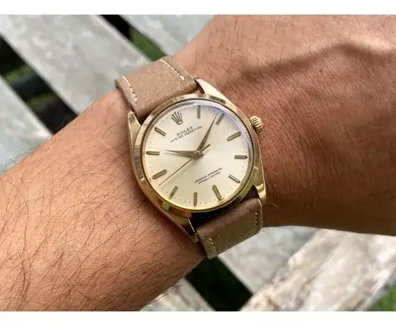 Ando detrás de algo como esto. Un reloj de “oro” estilo vintage para meterle una correa marrón (no la del tono de la foto). Lo que no quiero es soltar 6 mil pavos por un reloj y menos por uno con 60 años. No me sobran tanto…