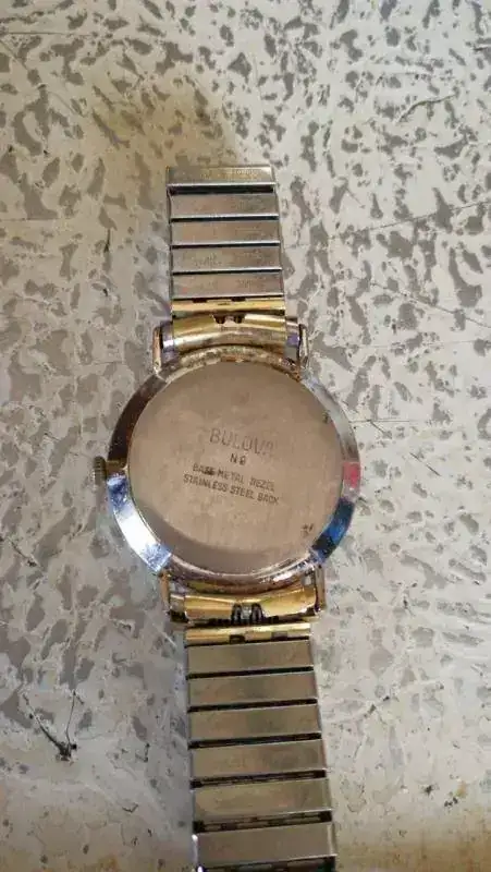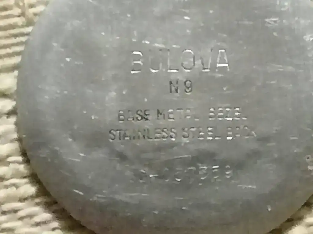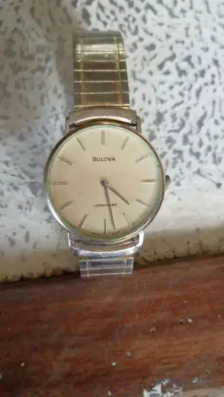 Hola a todos, estimados foreros, hoy me han regalado este bulova, es SUPER delgado a cuerda. No se ni calibre, ni modelo ni nada. La esfera dice bulova abajo de las 12 y arriba de las 6 aparece longchamp. En la tapa por fuera aparece marcado bulova, debajo de eso aparece N9, y debajo de eso base metal bezel, luego Stainless Steel back, y abajo aparece un número 6.057359. Algo parecido a esto: