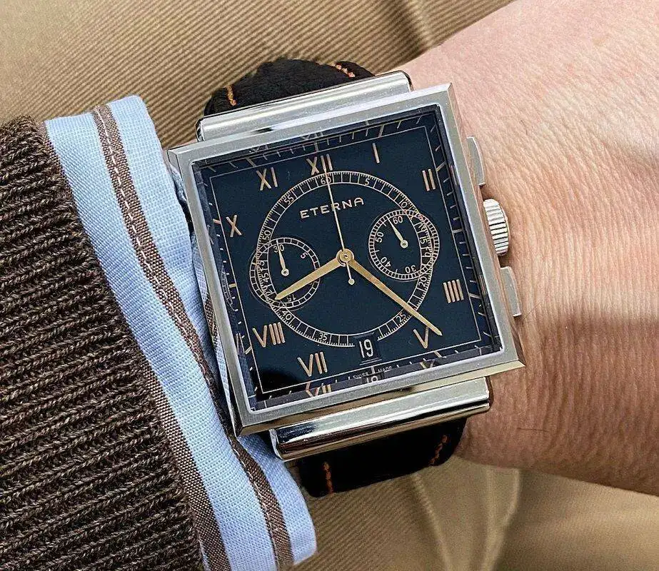 Hoy, por ejemplo, uno de los relojes que más me ha llamado la atención en el hilo diario ha sido el precioso crono cuadrado Eterna del compañero @Maclock, que espero no le moleste reproduzca aquí