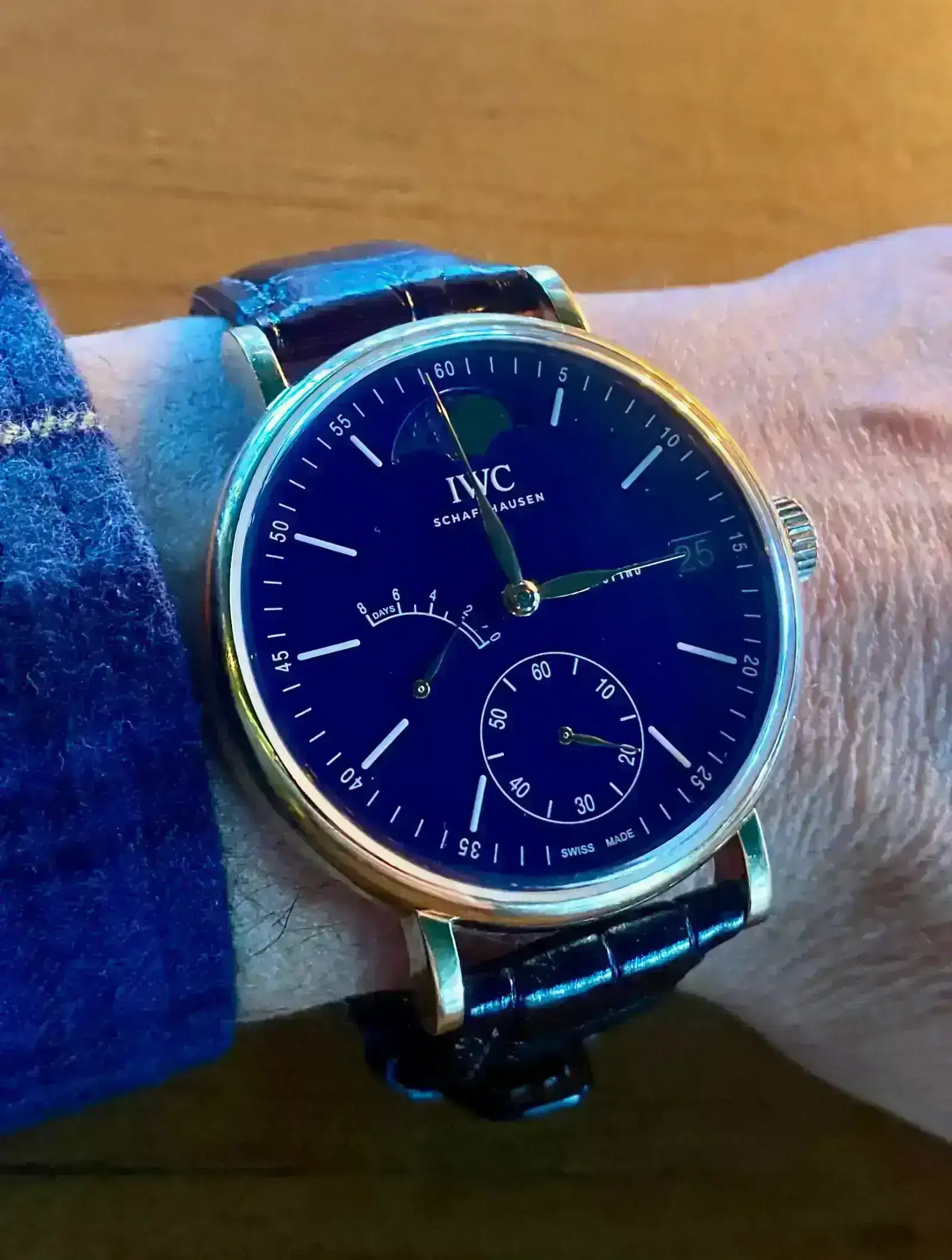 Los Portofino están mucho menos vistos que otras colecciones. Son de belleza y acabado impecable. Lo normal, al ser tu primer IWC, es q te fueras a un Pilot o Aquatimer, pero alabo tu decisión.