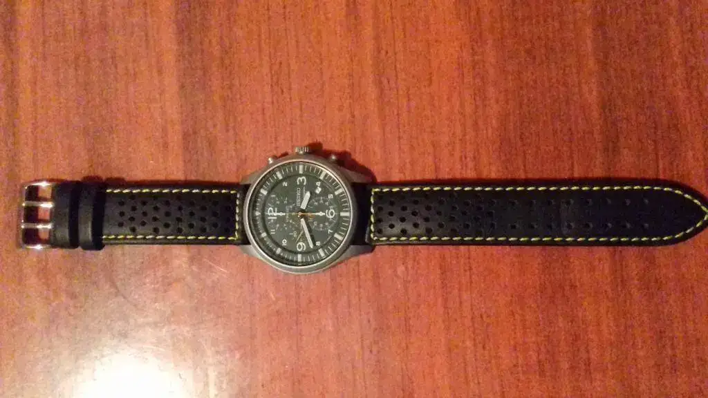 Estoy contigo, pruebalo una marron claro estilo pilot ( con las 2 tachuelitas) a ver que tal...Hola amigo. Si bien no le queda mal, a mi me pasa como a ti, y no termina de convencerme...Yo le colocaría una correa de piel marron claro, incluso podría ser con hilos blancos, que le iría de mil maravillas. Le daría un aspecto entre informal y rustico muy bonito. Ese es mi humilde consejo. Un abrazo !!![]()