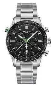 Es un cuarzo de lo que certina llama precidrive, con una desviación de 10 segundos al año, es un cronógrafo con una aguja central que mide las centésimas de segundo (he visto videos y mola verla dar vueltas)