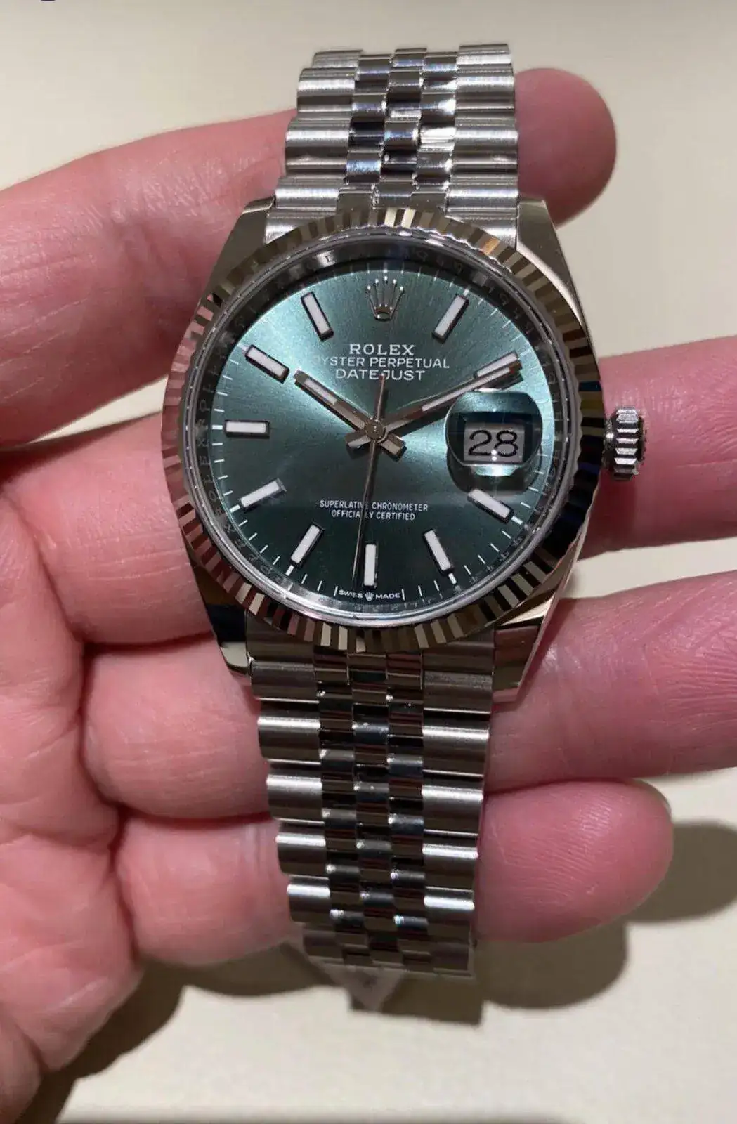 Totalmente de acuerdo. Alucine cuando meBuenas compañeros hoy he pasado por el CO de mi ciudad y he podido probarme el DJ bisel estriado 41 con jubilé, la verdad no tengo palabras para describir la sensaciones como este reloj, esfera preciosa varías tonalidades diferentes según posición de la muñeca, lo encargué con oyster pero después de probar esta combinación me he decidido por jubile, una auténtica preciosidad de combinación en vivo, a la vez he conocido a su Gerente Alejandro muy amable el cual me ha explicado con todo detalle tanto las características de ese modelo como de otros que tenia de exposición, he pasado un rato de tertulia muy agradable el cual se agradece.Gracias al CO
