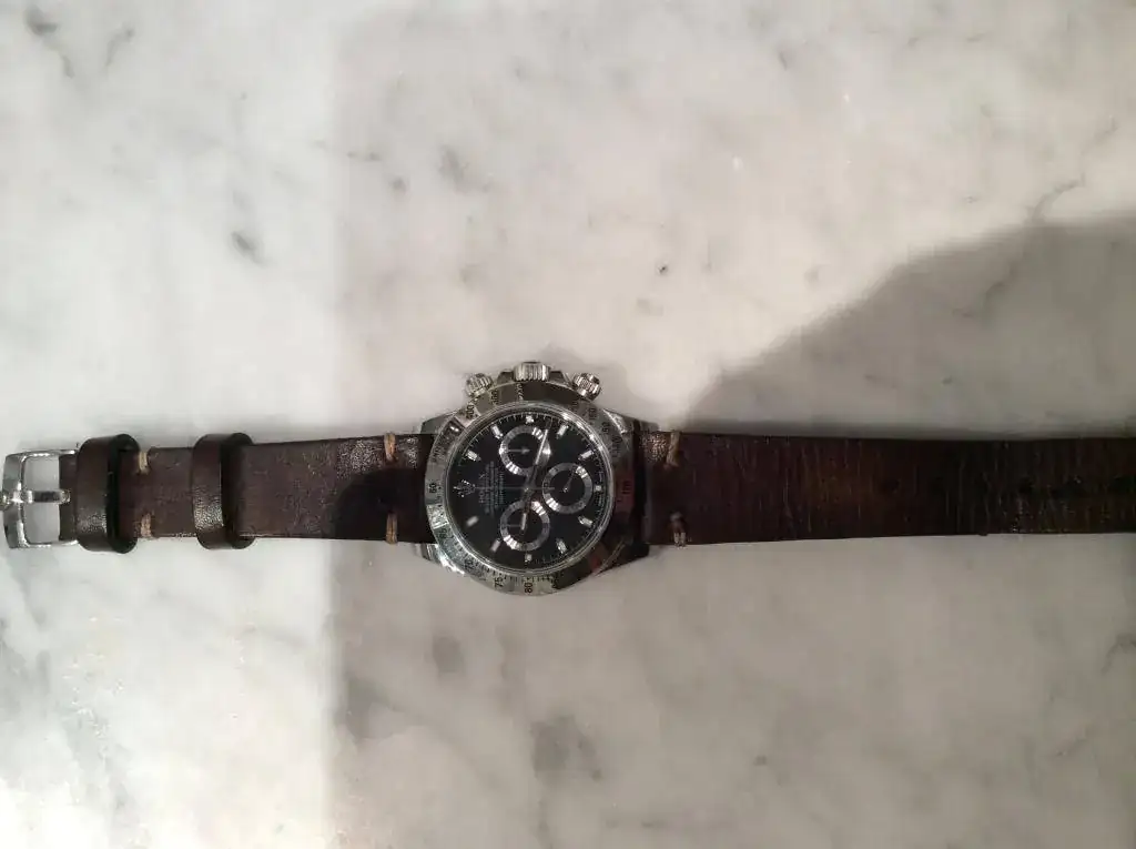 Lo segundo decirte que yo con tu reloj y queriendo una de piel lo tendría clarísimo, una de la marca Everest (la marca que fabrica esos preciosos cauchos para Rolex) que le va que ni pintada a tu Daytona........permíteme que ponga una foto para ilustrar: