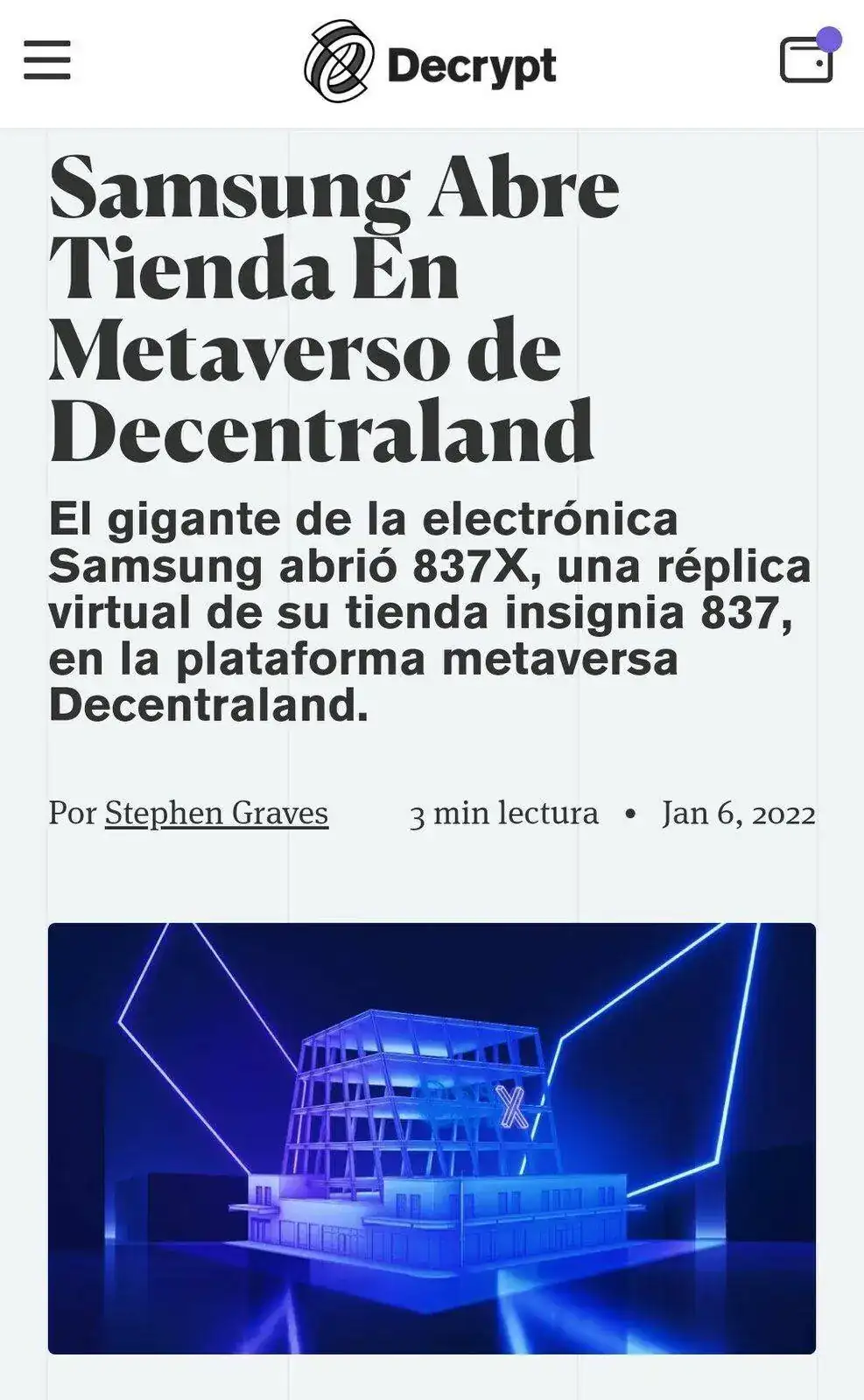 Zara, Adidas, Nike, Samsung, Balenciaga, Nissan, BMW, Coca-Cola, y un largo etc... ya están en el Metaverso, y la puerta de entrada son las cryptomonedas CON SUS Proyectos (use discernimiento el lector). Los NFTs cotizan, las cryptos cotizan, los play to earn cotizan y además te diviertes y te pagan, todos ganamos. Es cierto que unos ganarán más que otros, no cabe la menor duda, y de que hay mucha especulación al respecto, pero... ganamos más en el mundo real? Ganamos más pagando por el puñetero Messi 300 millones de euros?, no es eso una locura? O por un puñetero reloj 30.000 euros? O por unas puñeteras zapatillas (mi gran vicio) 500 euros? Porque no por un NFT?