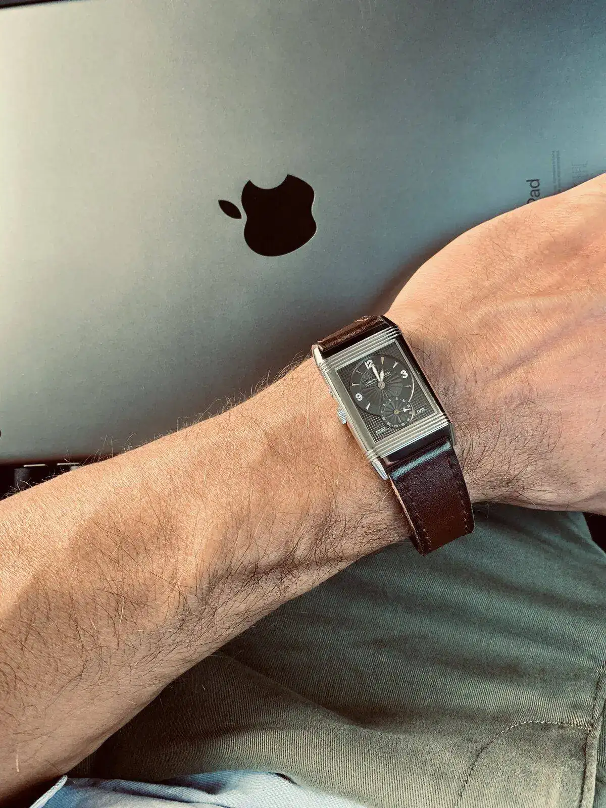 Relojazo! y mucho más versátil que lo que pueda aparentar una caja cuadrada y correa de piel. Yo “te lo compro” con camiseta y tejano.Hoy, currando en Las Canarias.
