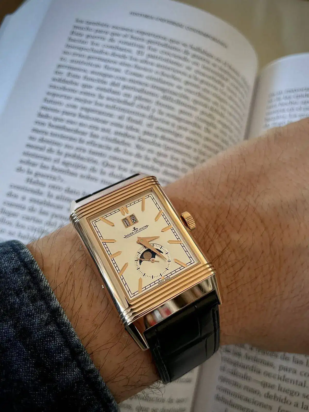 Gracias Llebeig,Llevo tiempo buscando mi Reverso, pero no consigo dar con él. En foto me encantaba tu Tribute duoface azul. Pensaba que mi búsqueda había concluido! Pero efectivamente, al verlo y probármelo en vivo me pareció un azul que según los reflejos se tornaba violeta que me echó para atrás (manías personales obviamente). Porque salvo por ese pequeño (desgraciadamente para mí, gran) detalle, es un Reverso espectacular. Es una buena adición a tu, ya de por si, apabullante colección. Por mi parte, seguiré la búsqueda.