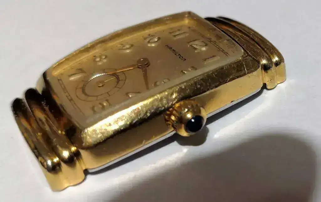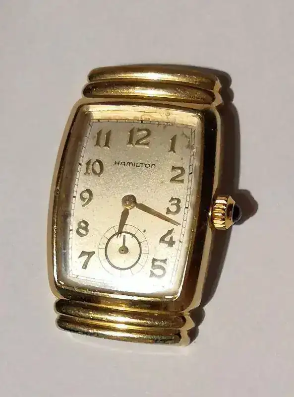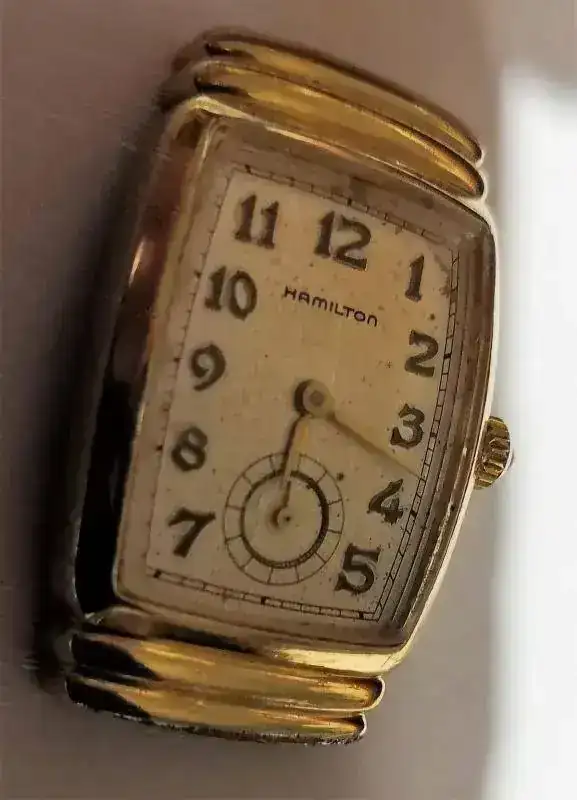 Si no me equivoco es el modelo Emerson de Hamilton. Este modelo era el re-editado de la version original Emerson de los años 40, de diseño Art-Deco. Este modelo que muestras parece que es el de finales de los 80/90.