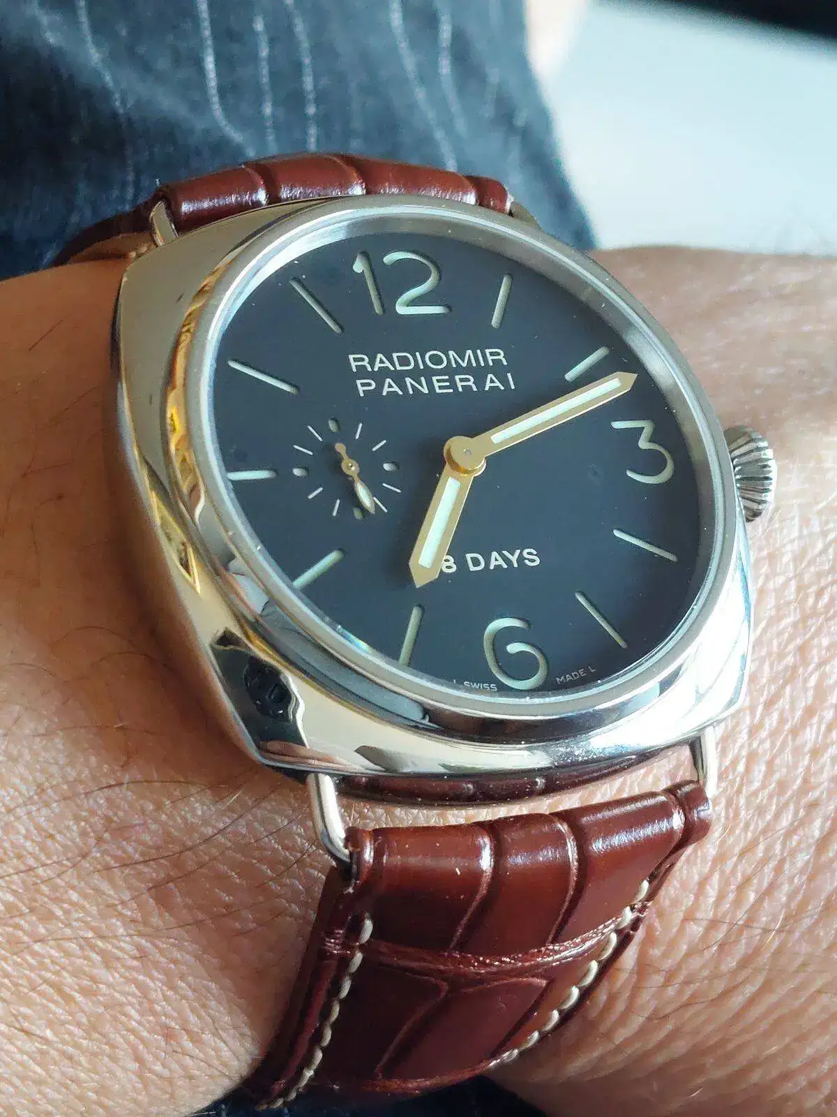 Tenías razón. Al final era un 380 que compré por impulso y a los pocos días devolví.Ese modelo que muestras no es un 183. Es un logo. Si es antiguo se tratará de un 380, con movimiento eta. Hace unos años los reemplazaron por el modelo 754, la mayor diferencia (no sé si la única) es que ahora llevan un movimiento manufactura con 3 días de reserva de marcha. El 380 ni tenía dial sándwich y creo que el 754 tampoco.