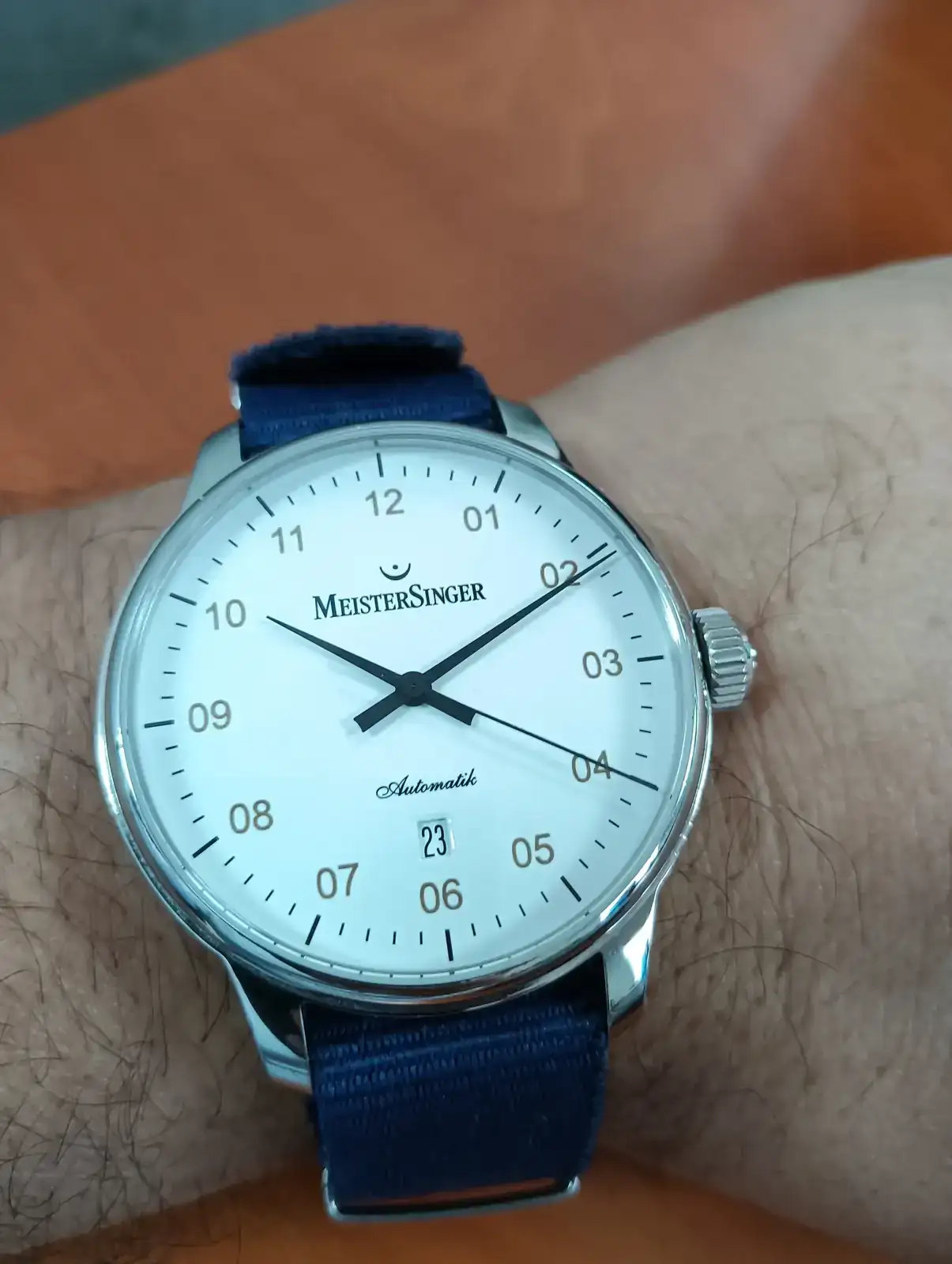 El primer Meistersinger que veo con más de una aguja. Bonito!Saludos compañeros. Que disfruten sus relojes y estén de lo mejor. Ver el archivos adjunto 3369874