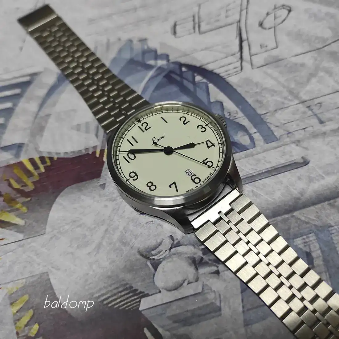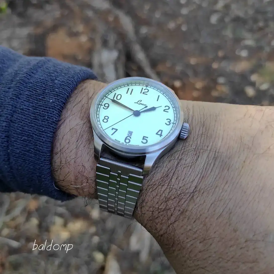 Me confieso más "de cueros" de "de hierros" en cuanto a correas, y más con analógicos, y más con mecánicos, y más con "old-style", pero con este reloj siempre he tenido un "¡uyyy!" porque si ya es estrechita una 18mm, además iba disminuyendo hacia la hebilla y la punta, y esos 12 o 14 mm quedaban como una ... pequeña banda en la muñeca, no se... demasiado pequeña para mi gusto.